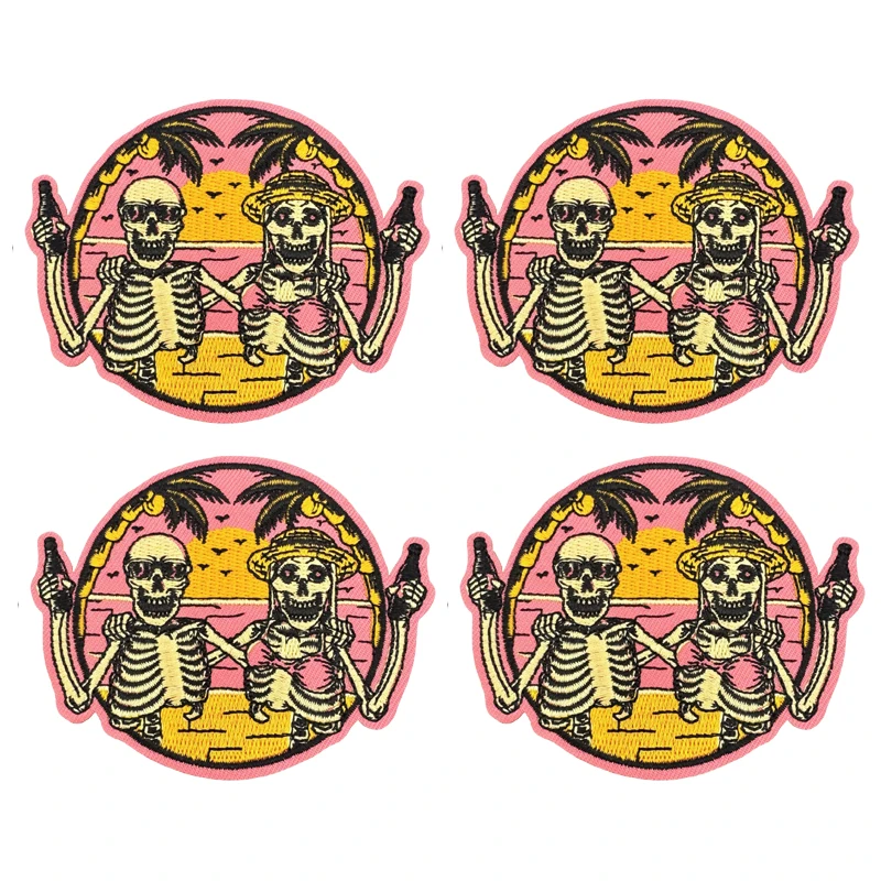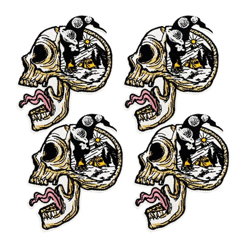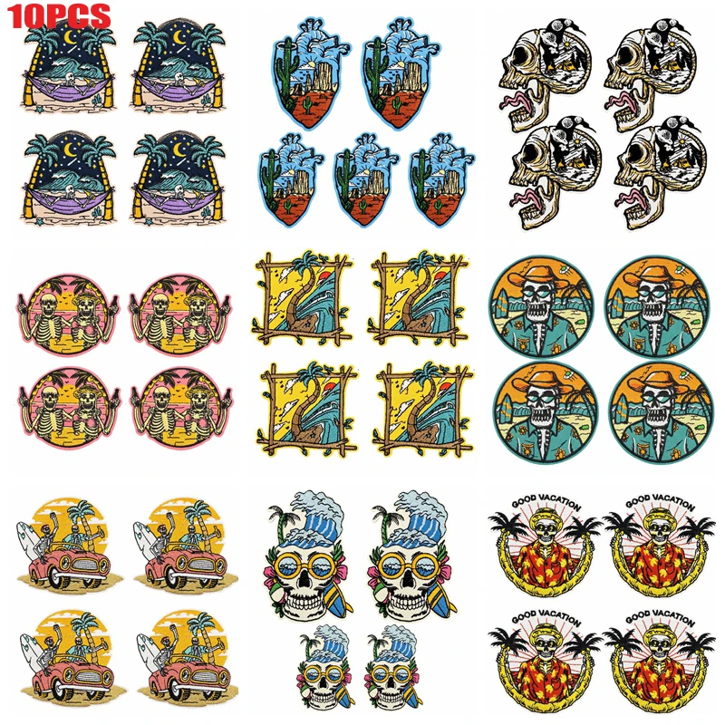 10 Uds. Parches bordados de coche con calavera de paisaje colorido para ropa DIY parche de calavera Hippie parches de hierro para pegatinas de ropa