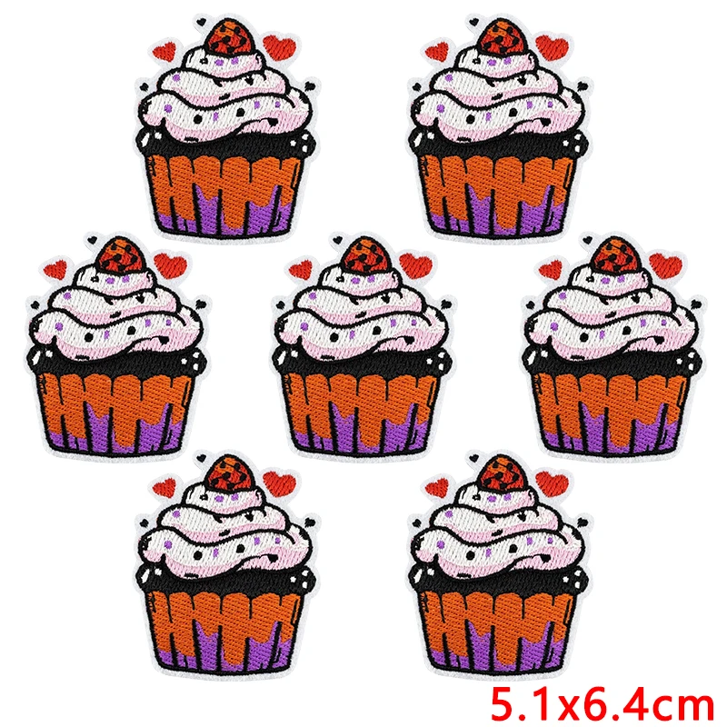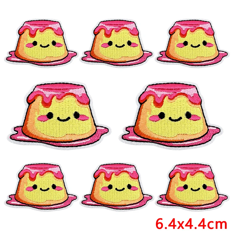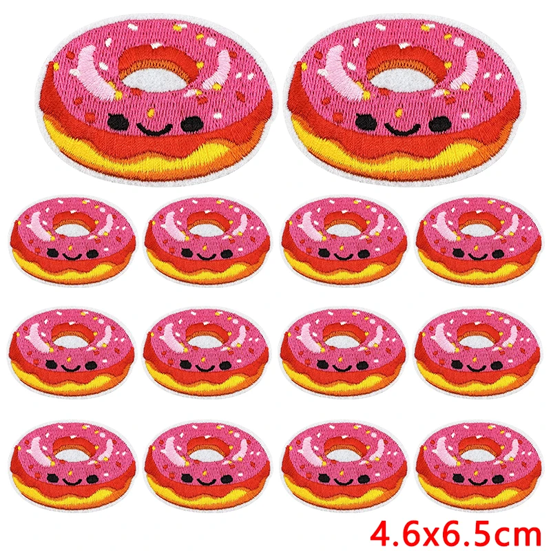 10 Uds. Parches bordados de dibujos animados bonitos DIY pudín Donuts helado Doodle pegatinas planchar sobre parches para decoración de ropa