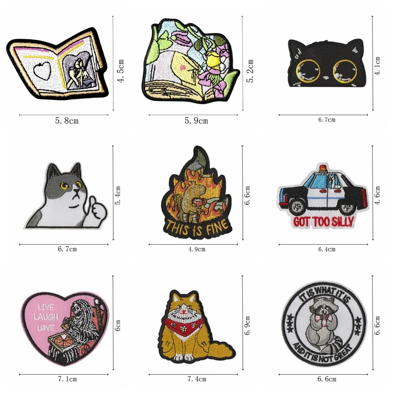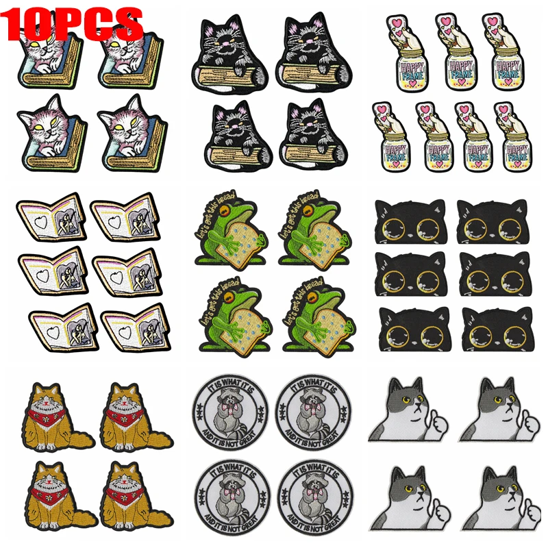 Parches bordados de gato y rana, 10 Uds., animales de dibujos animados, planchado para ropa, parches termoadhesivos para ropa, chaquetas, pegatinas para coser