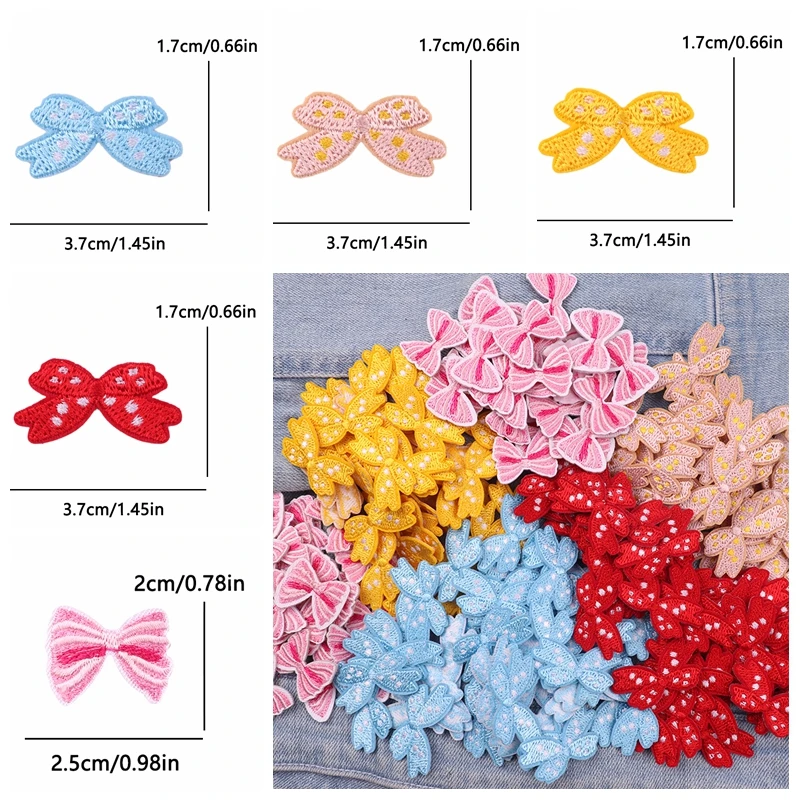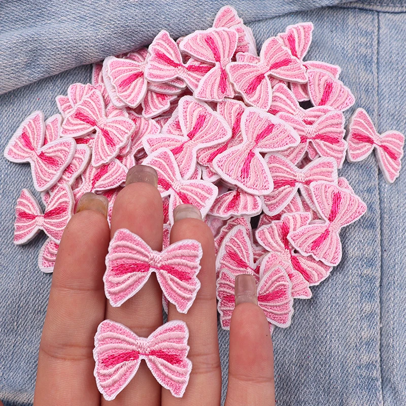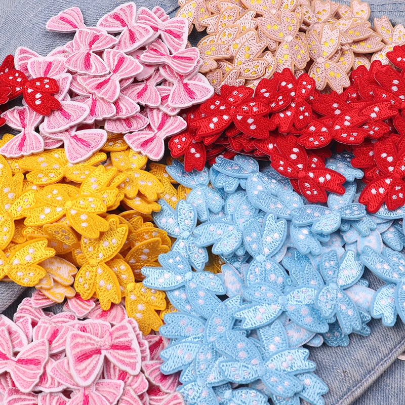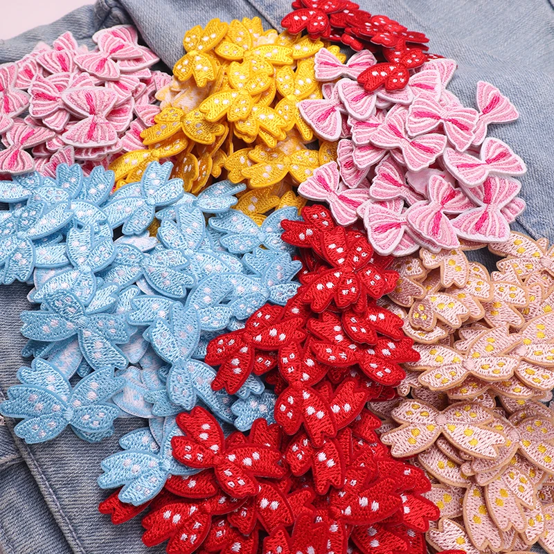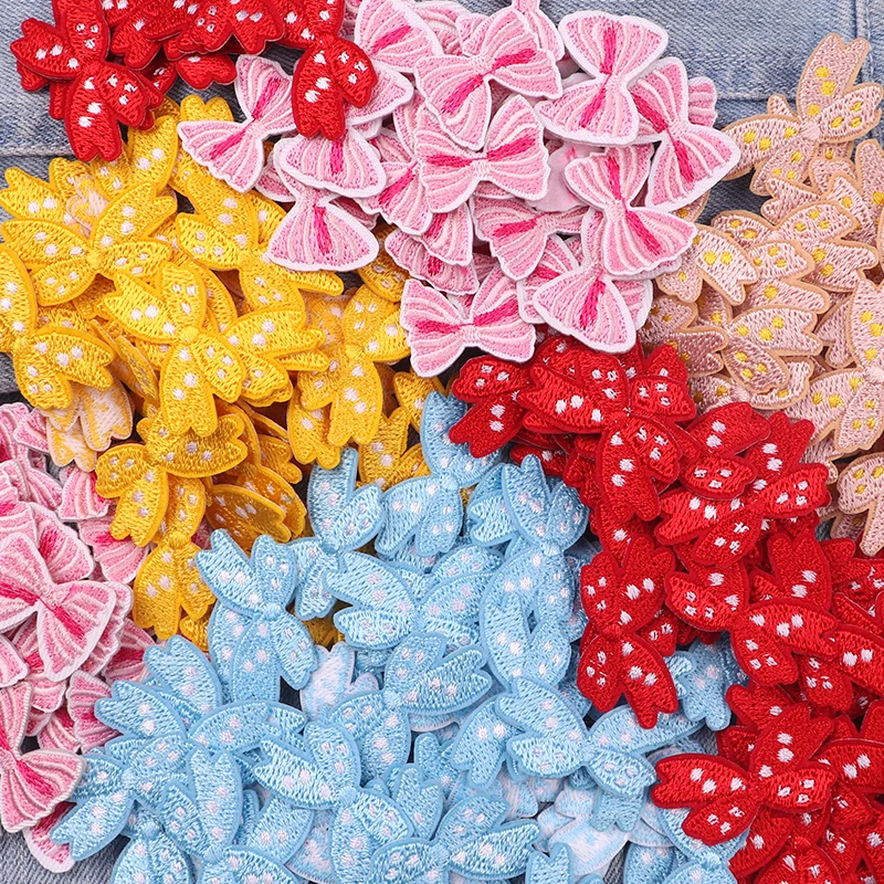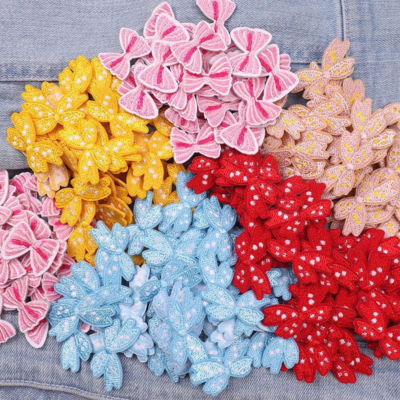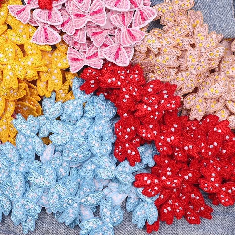 10 Uds. Parches bordados con lazo pequeño de dibujos animados sombreros falda Jeans bordado DIY parches para planchar para ropa pegatinas de parche de costura