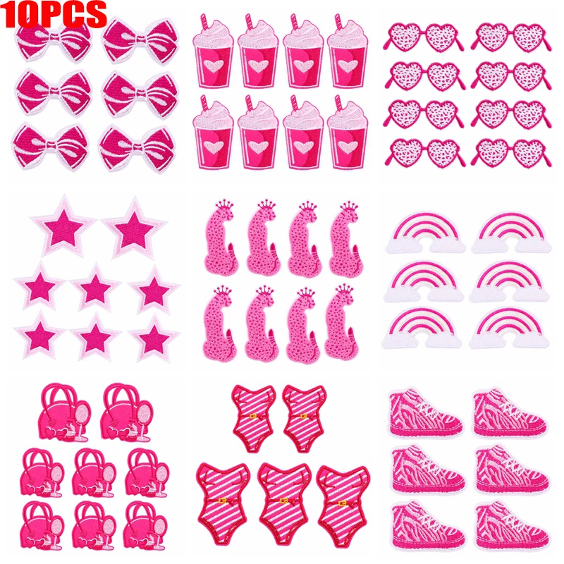 10 Uds. Parches bordados de color rosa de dibujos animados, gafas de leopardo, parche de lazo, parches de hierro para ropa, parche de animales, sombreros, chaquetas, costura DIY