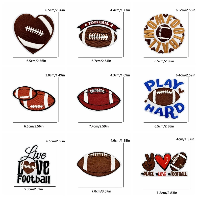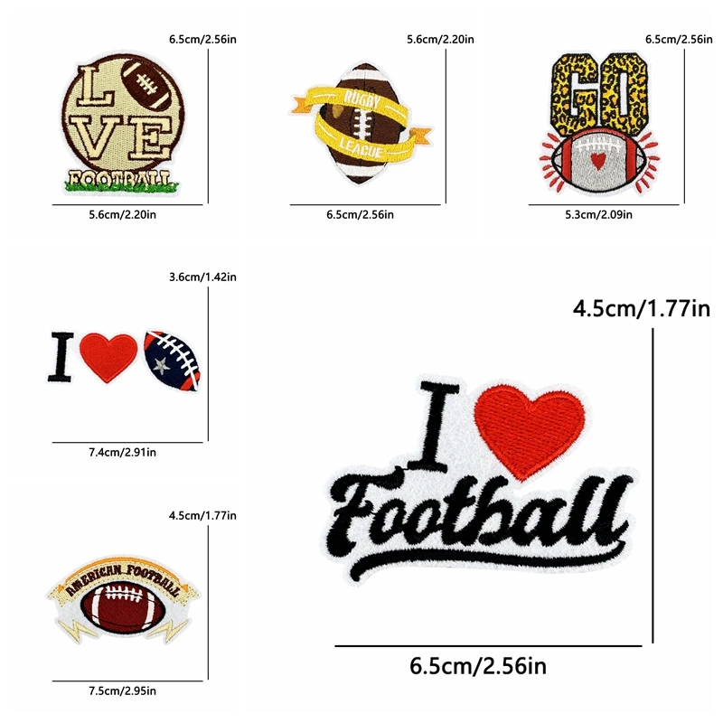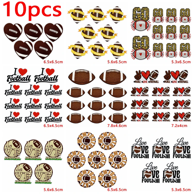 10 Uds. Parches de hierro de dibujos animados para ropa DIY, parche bordado para el día del juego de Rugby en ropa, chaquetas, apliques para coser, insignia adhesiva