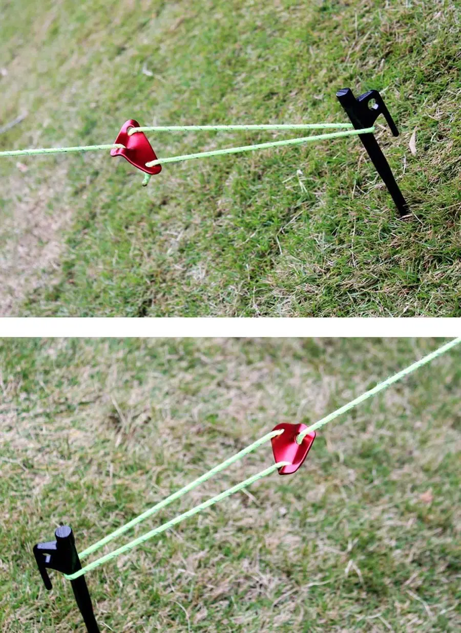 10 Uds. Tensores triangulares de hebilla de cuerda de viento de sujeción de cuerda de tienda de campaña de aleación roja
