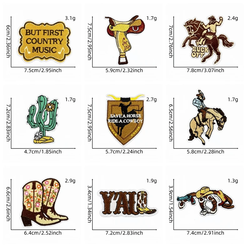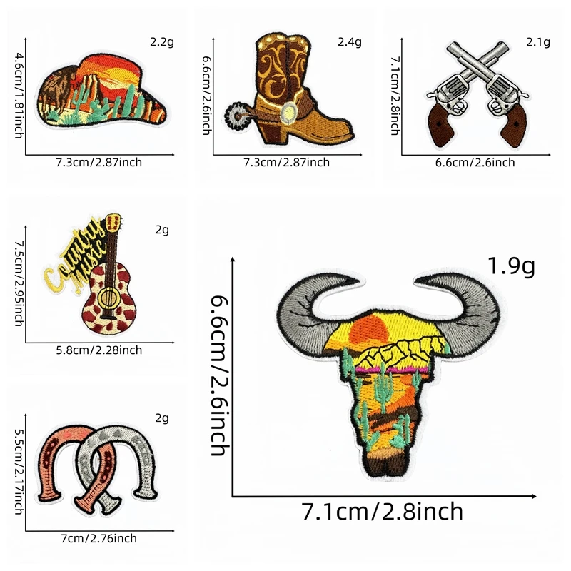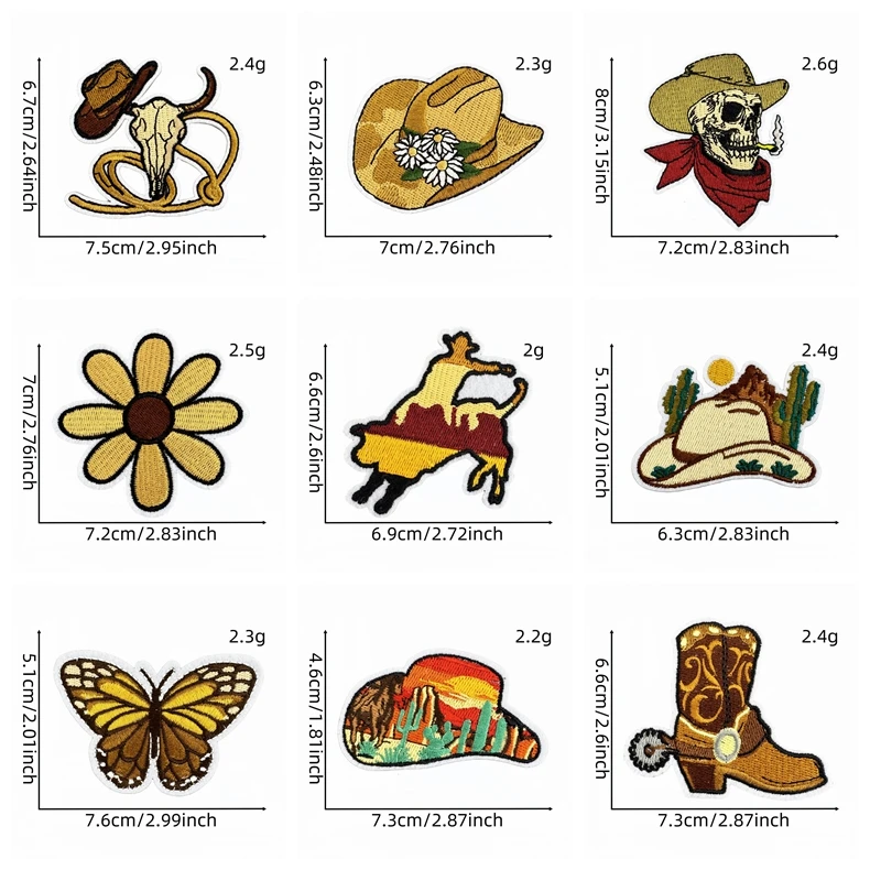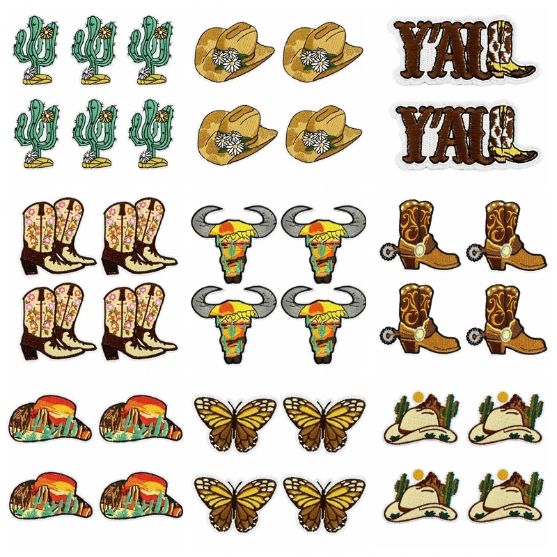 10 Uds. De vaqueros occidentales/paisaje de verano, parches bordados para botas, parche para cabeza de caballo y vaca, sombreros, mochila, insignias para coser, parches para planchar DIY