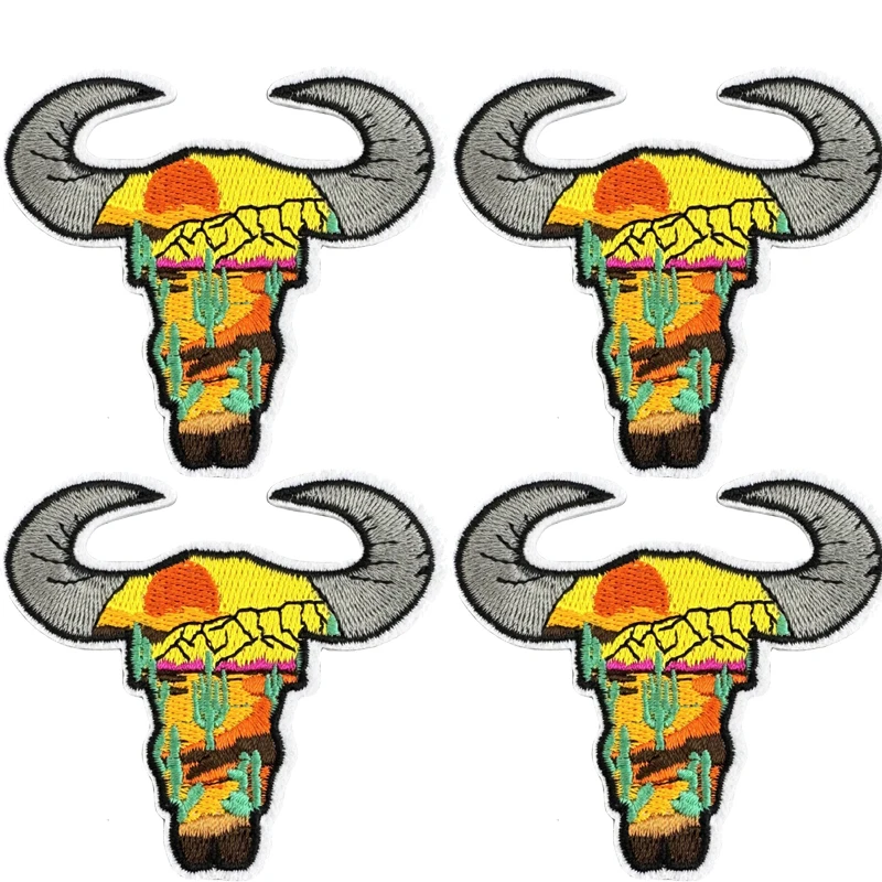10 Uds. Parches bordados de paisaje occidental para niños/verano, parche para cabeza de vaca y caballo, sombreros, mochila, insignias para coser, parches para planchar DIY