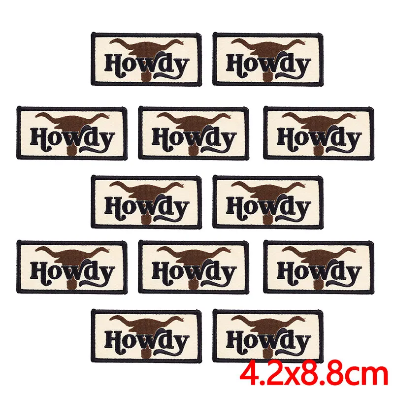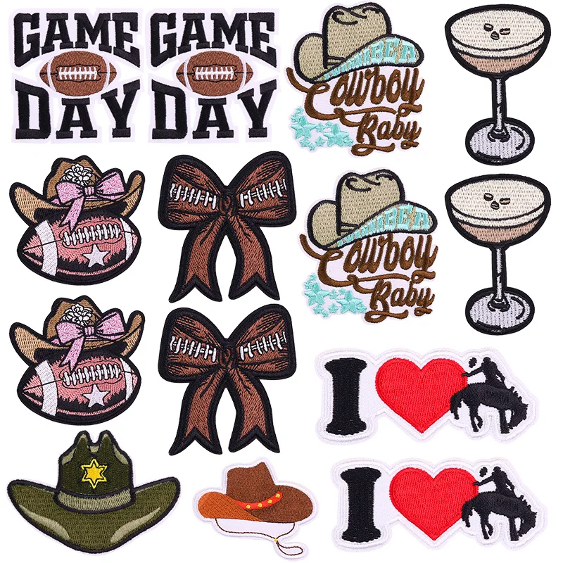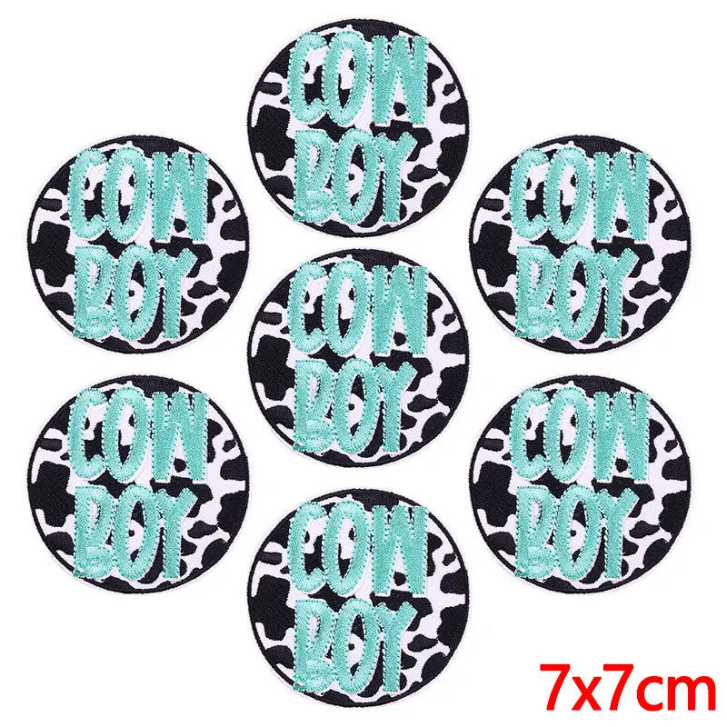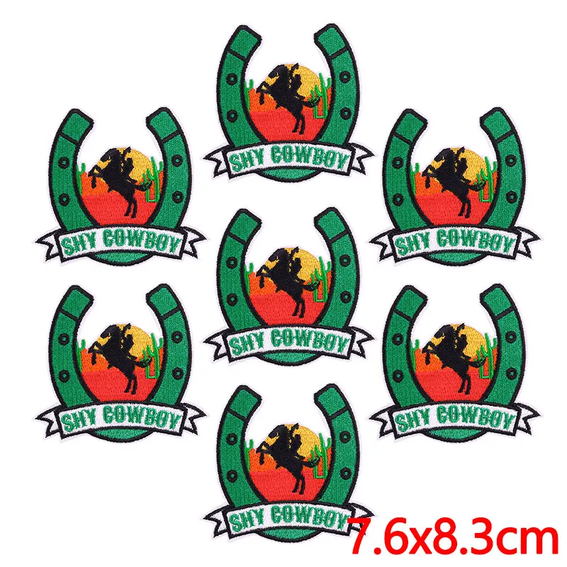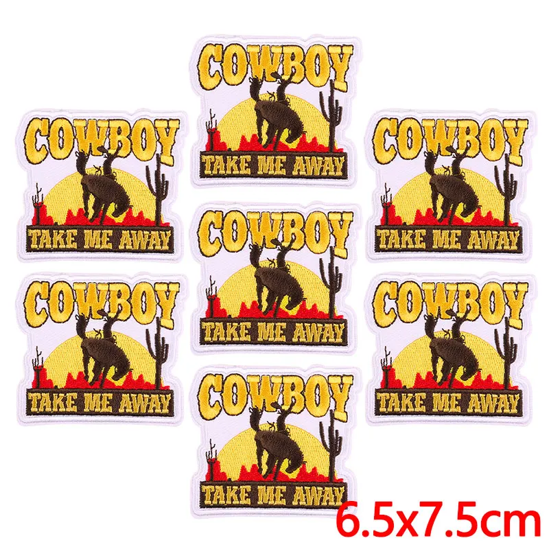 10 Uds., venta al por mayor, sombrero de vaquero, botas, parches de hierro para ropa, parches bordados para ropa, apliques de lazo, insignias adhesivas DIY