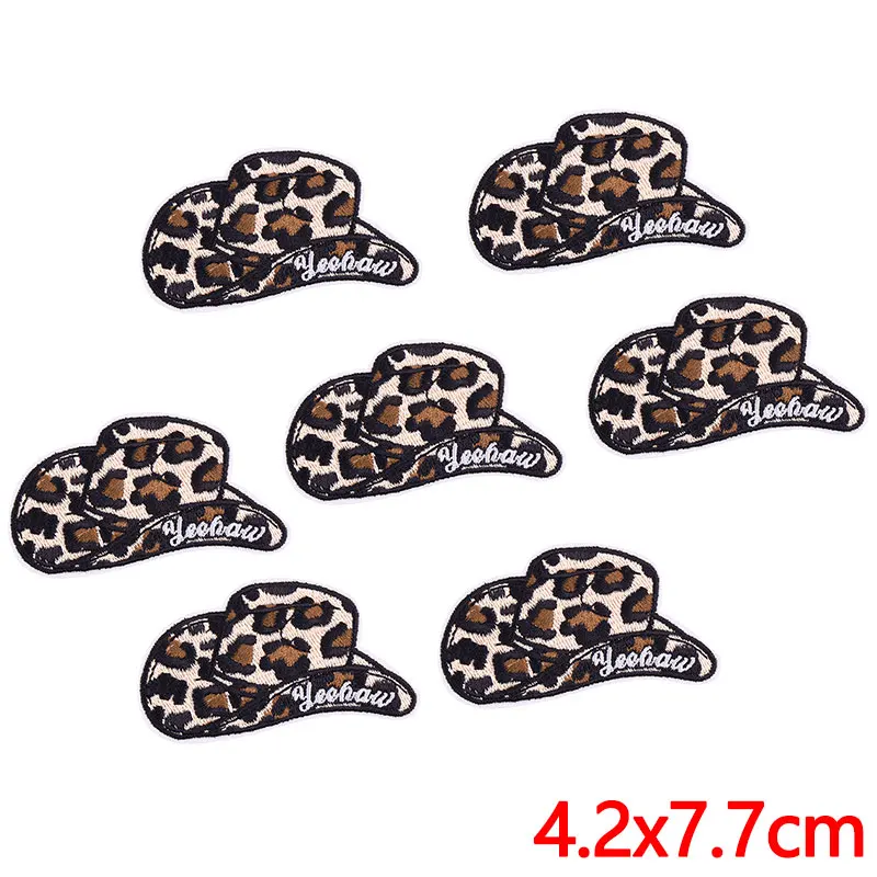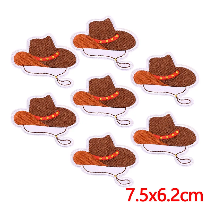 10 Uds. Venta al por mayor, botas de sombrero de vaquero, parches para planchar para ropa, parches bordados para ropa, apliques de lazo, insignias adhesivas DIY