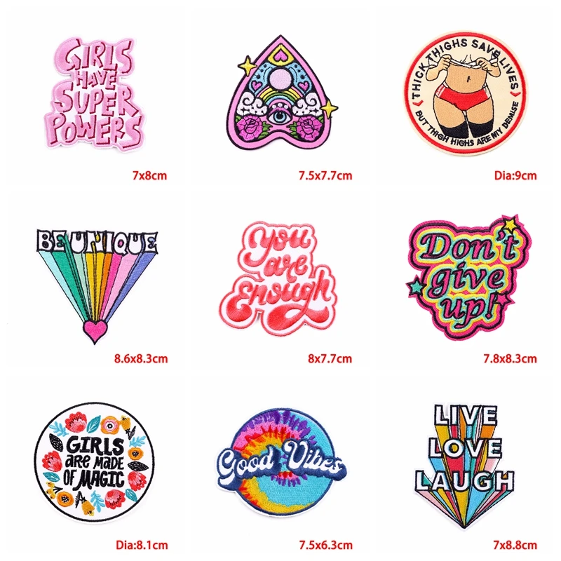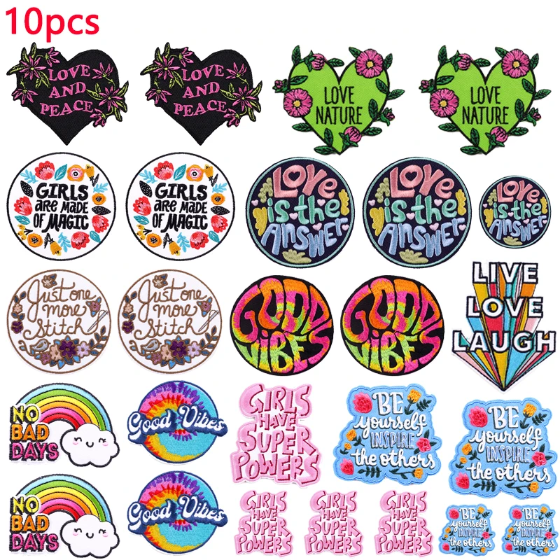 10 Uds., venta al por mayor, parche bordado de flores con letras de dibujos animados/arcoíris, parche de letras, parches de hierro para ropa, chaquetas, mochila DIY