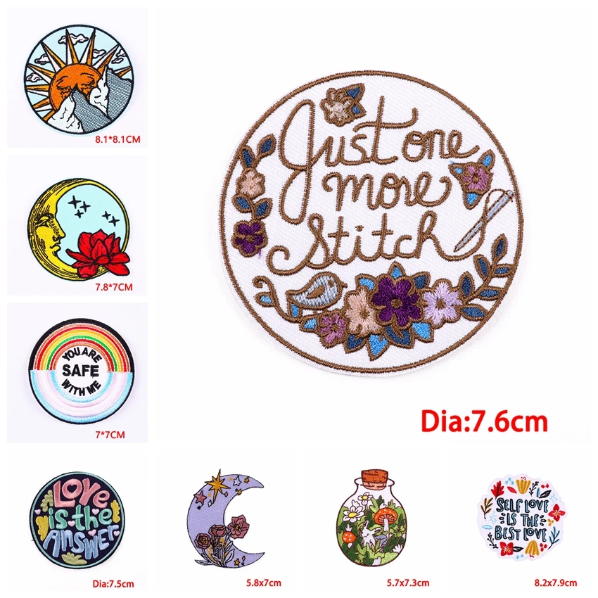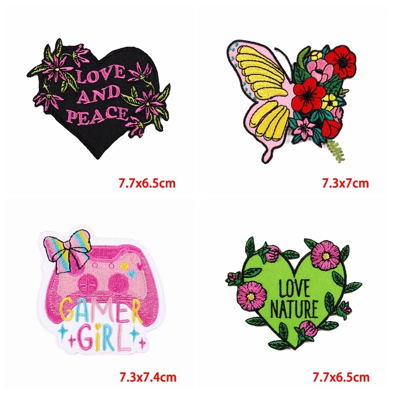10 Uds. Venta al por mayor de parches bordados de flores con letras de dibujos animados/arcoíris, parches para planchar para ropa, chaquetas, mochila DIY