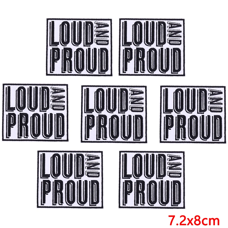 10 Uds., venta al por mayor, parches para planchar en ropa, parche bordado ruidoso y orgulloso en sombrero, chaqueta, pegatina decorativa Personal con apliques