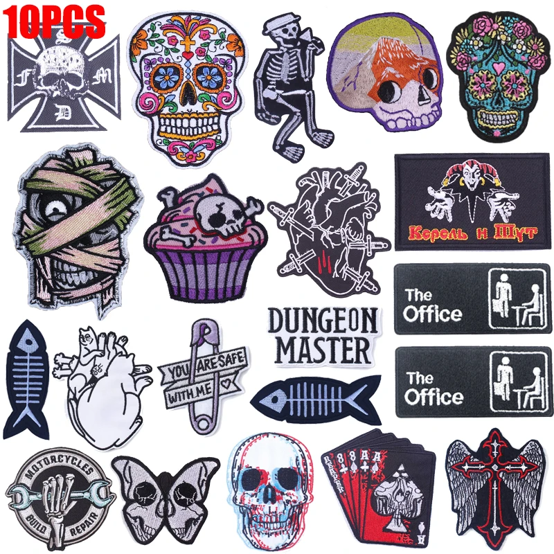 10 Uds., venta al por mayor, parche bordado Punk/cráneo, parche de eslogan con letras, parches de hierro para ropa, insignias de costura de mariposa y corazón DIY