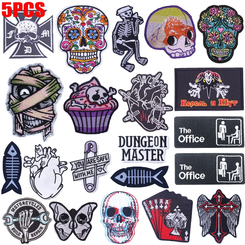 10 Uds. Venta al por mayor parche bordado Punk/cráneo parche con eslogan de letras parches para planchar para ropa DIY insignias de costura de mariposa y corazón