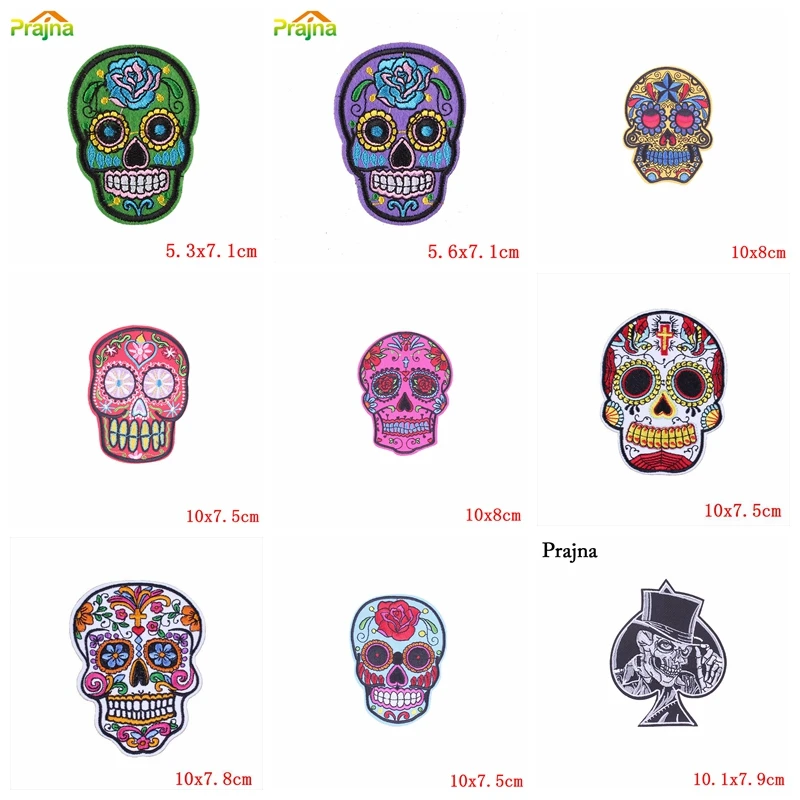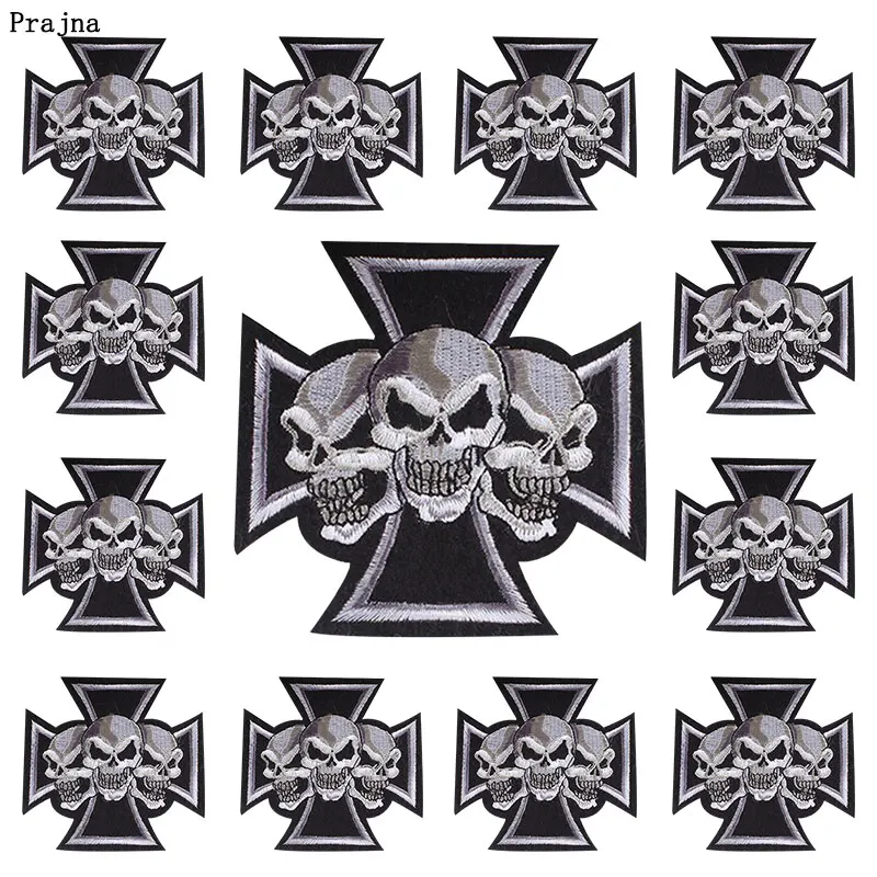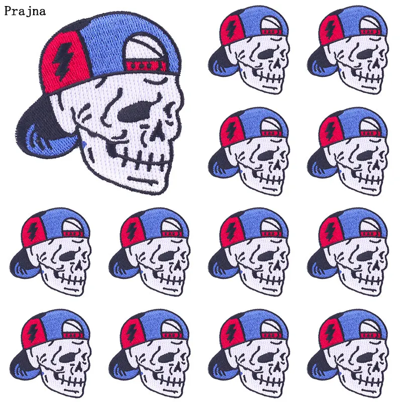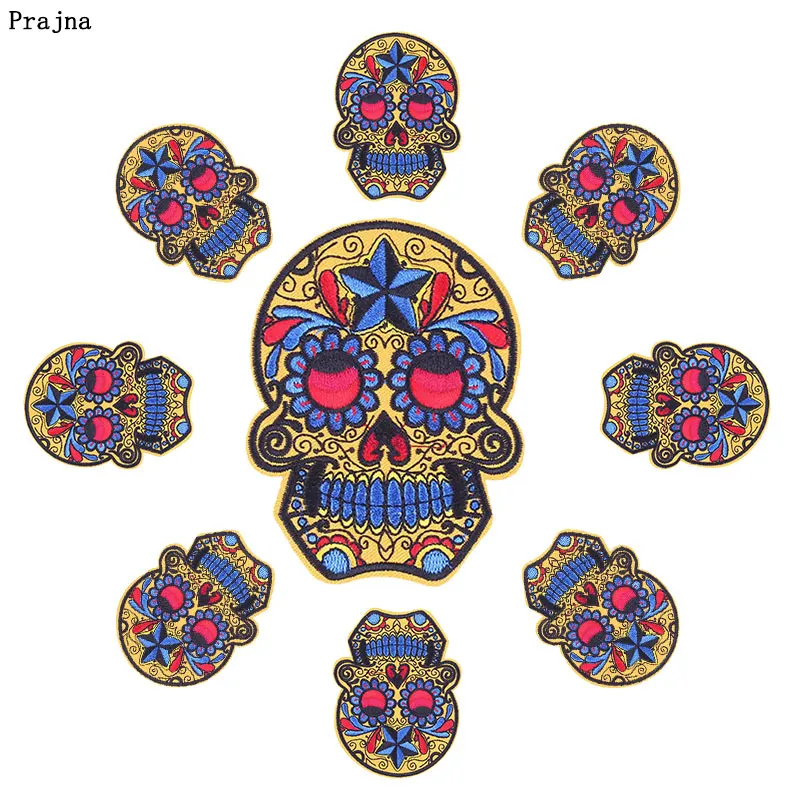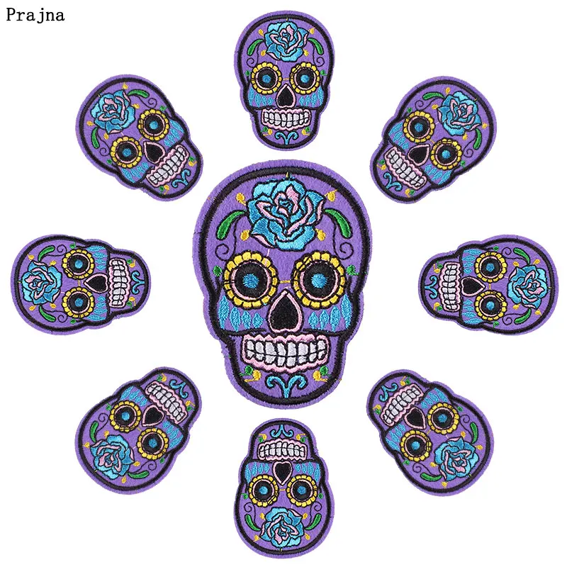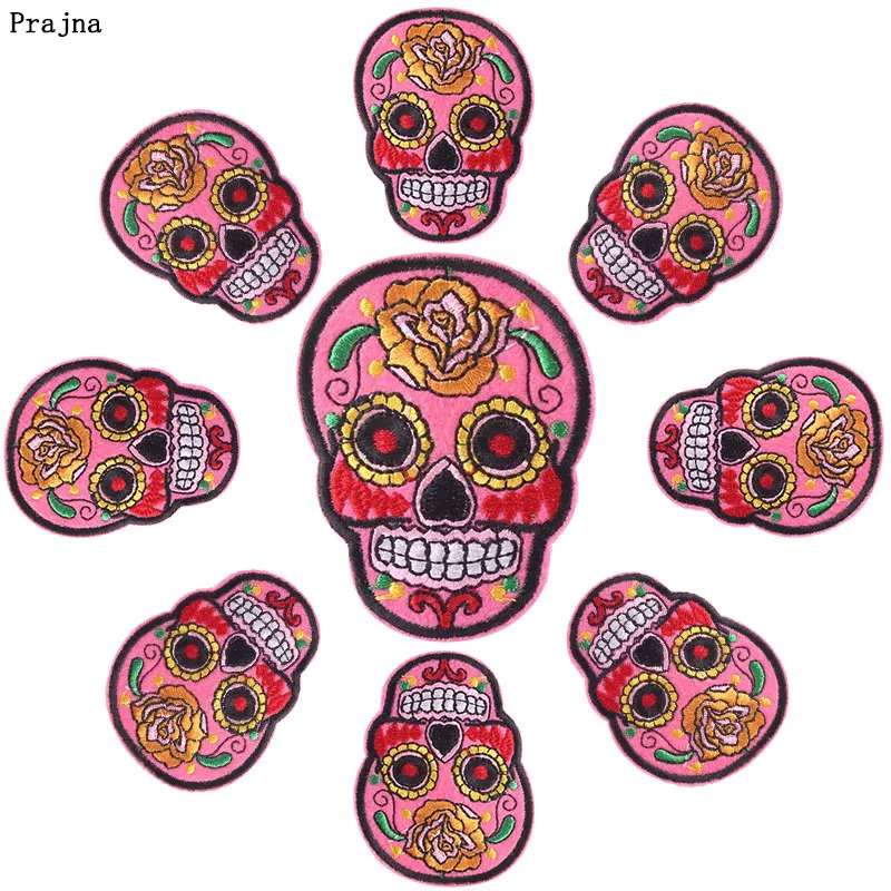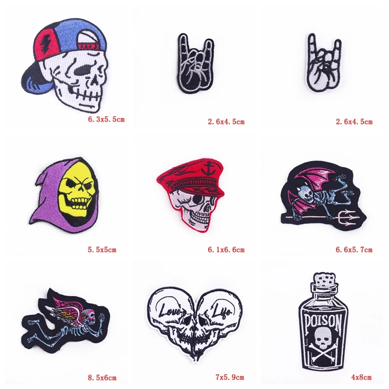 10PCS Wholesale Hippie Skull Patch Iron On Patches For Clothing Stickers Punk Biker Embroidered Patches On Clothes Applique DIY