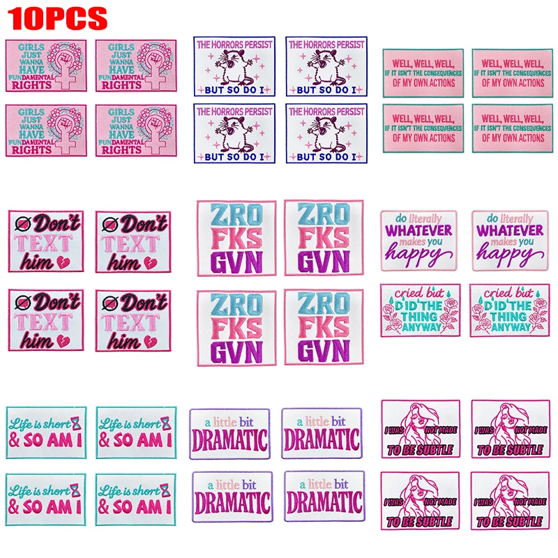 10 Uds. Parche de dibujos animados al por mayor, parches bordados con letras rosas, parches de hierro DIY para ropa, chaquetas, sombreros, insignias bordadas