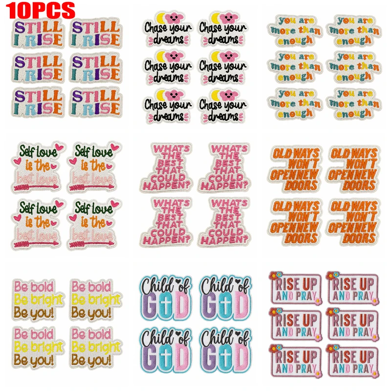 10 Uds., venta al por mayor, parches bordados con letras coloridas de dibujos animados, chaquetas DIY, sombreros, pegatinas bordadas, parches para planchar para ropa