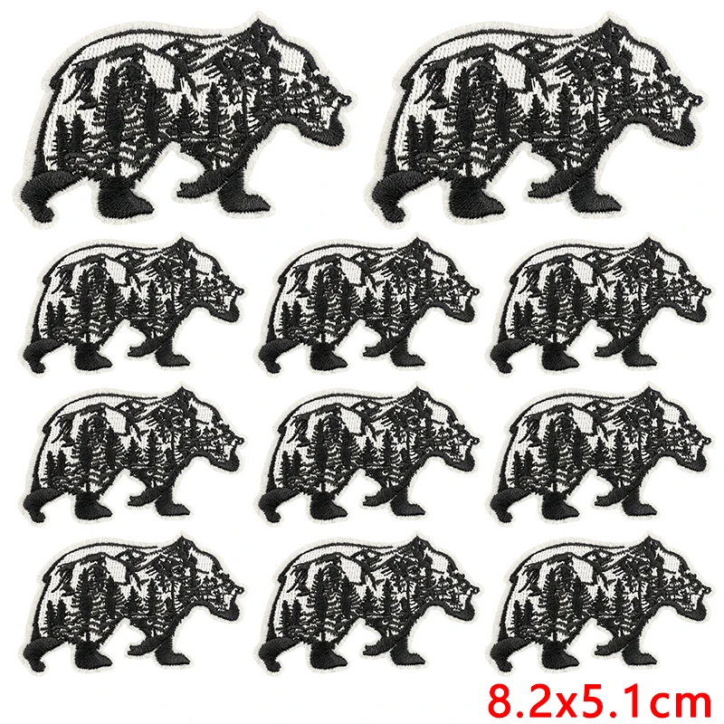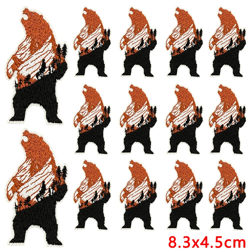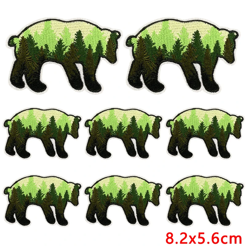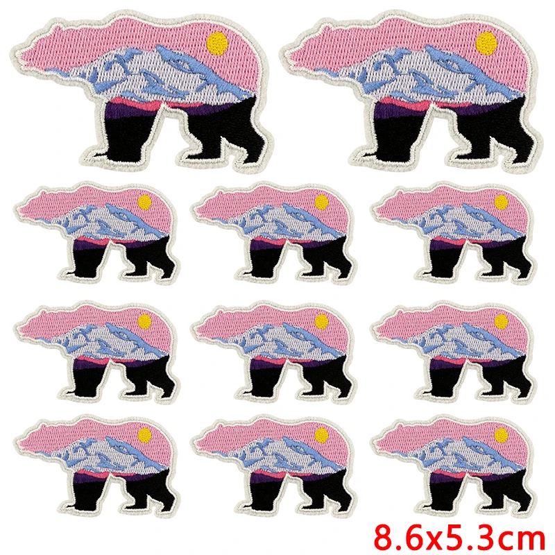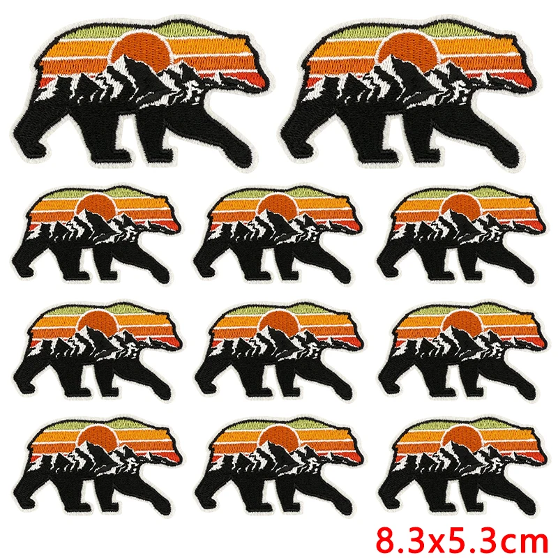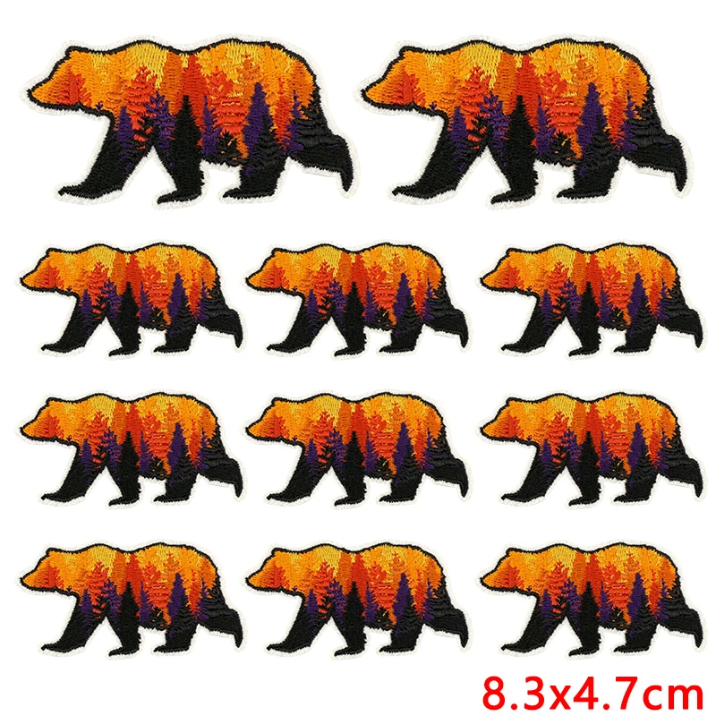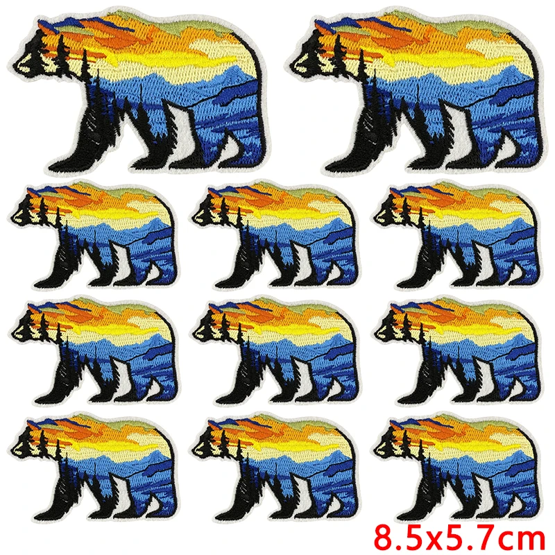 10 Uds. Venta al por mayor de parches bordados de osos animales de dibujos animados paisaje natural parches para planchar DIY sombreros chaquetas coser insignia Decoración