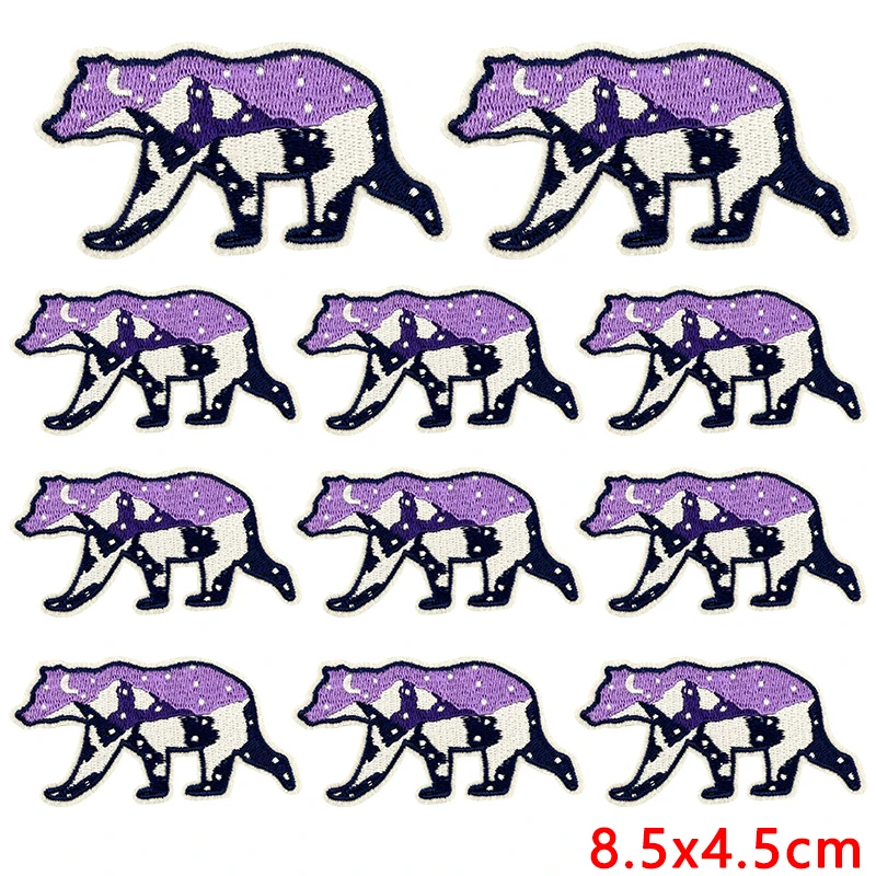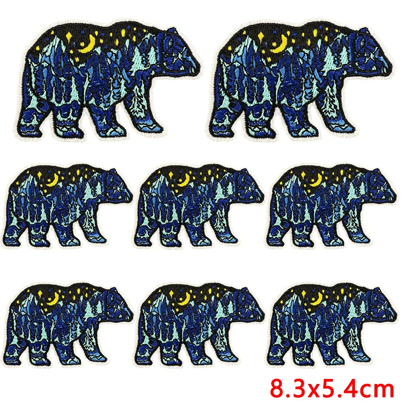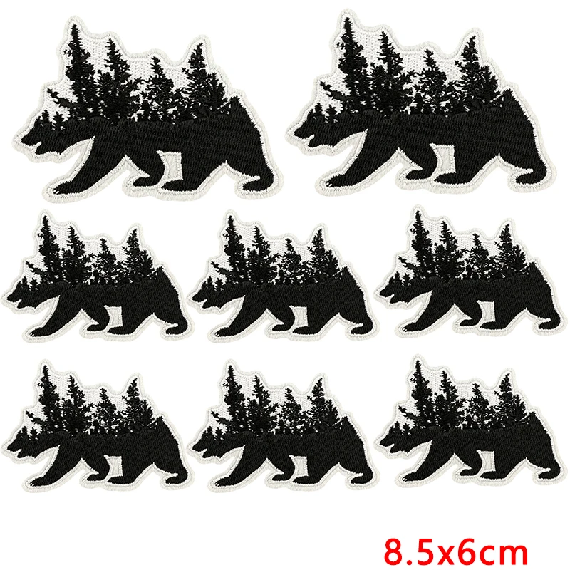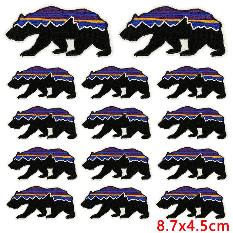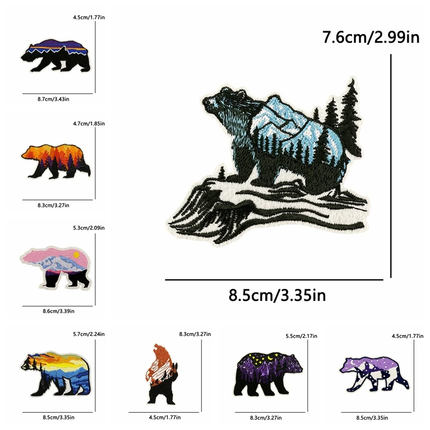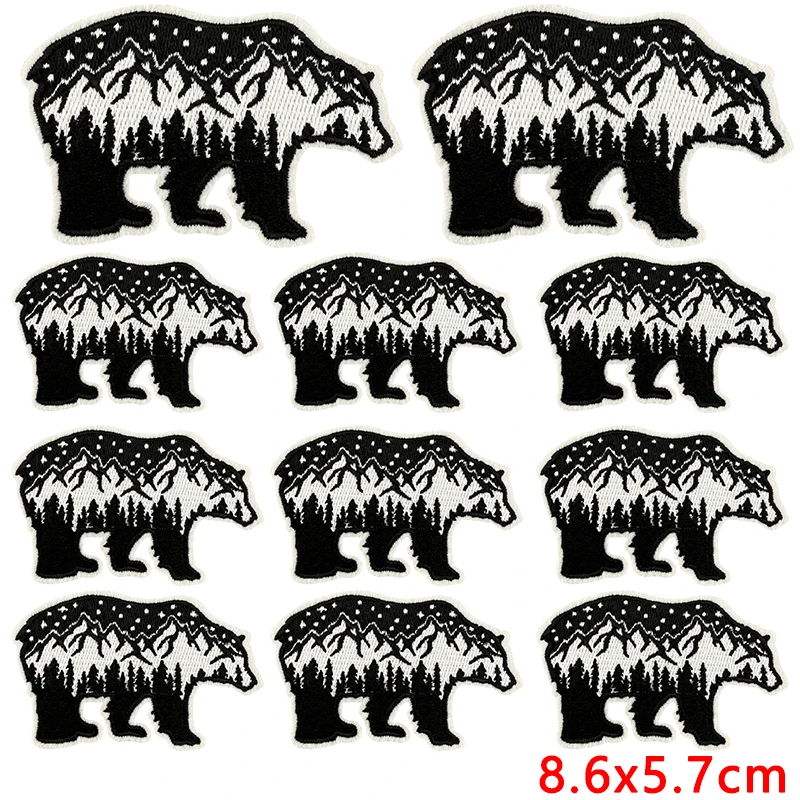 10 Uds. Venta al por mayor de parches bordados de osos animales de dibujos animados paisaje natural parches para planchar DIY sombreros chaquetas coser insignia Decoración