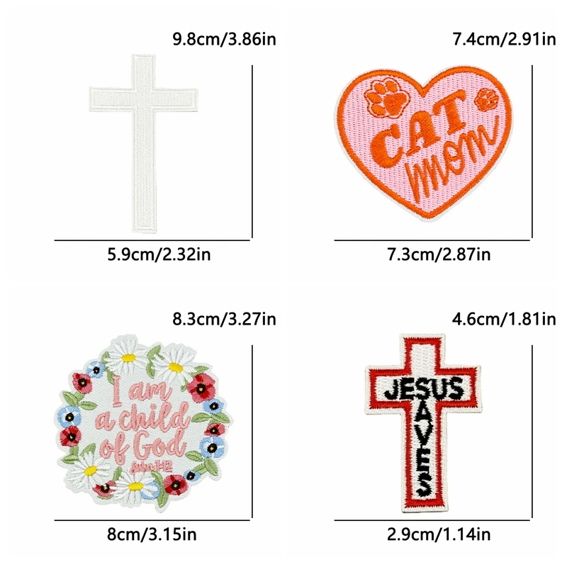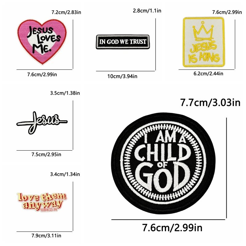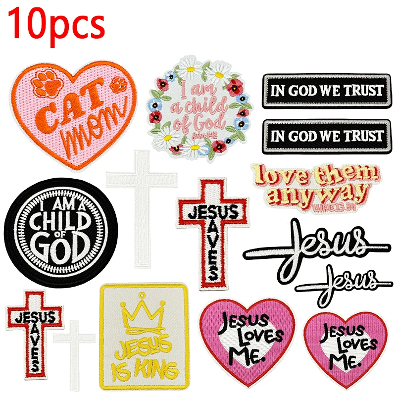 10 Uds. Venta al por mayor de parches bordados de la serie de dibujos animados/Faith para chaquetas Jesús/Dios bendiga hierro en parches para ropa pegatinas para coser