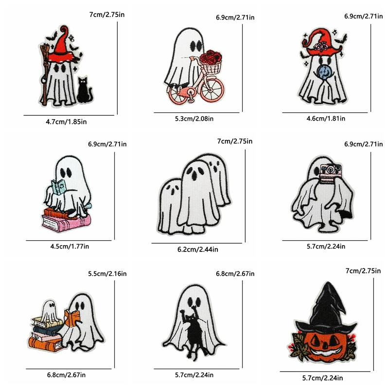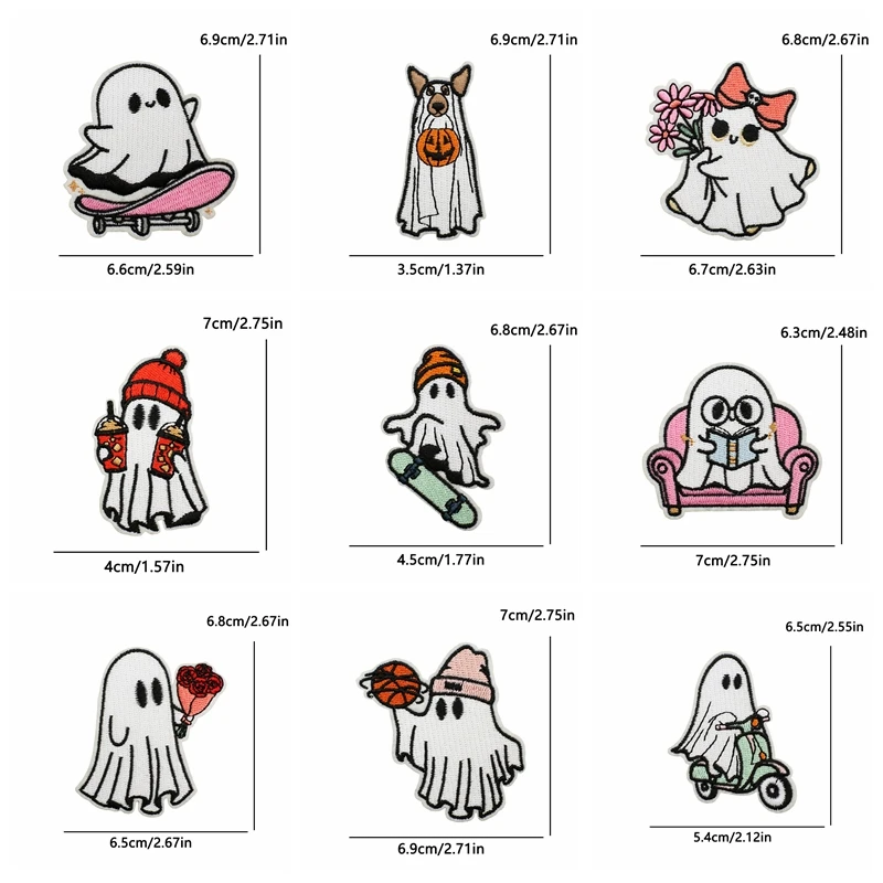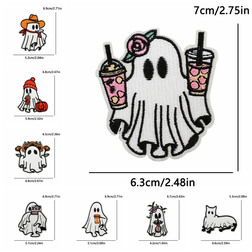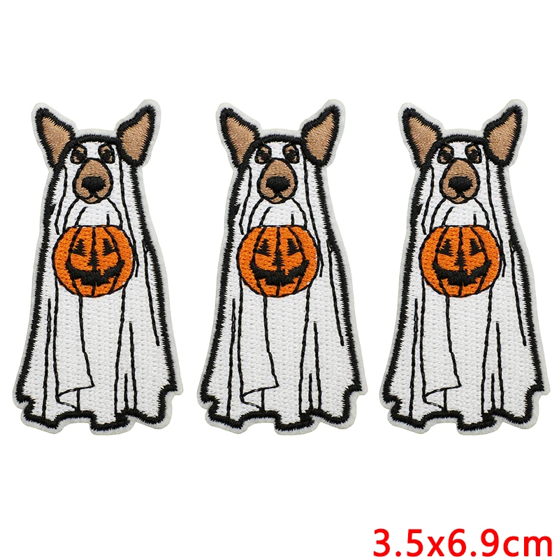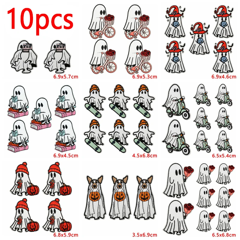 10 Uds. Venta al por mayor de parches bordados de la serie Halloween para ropa chaquetas DIY fantasma baloncesto hierro en parches para ropa