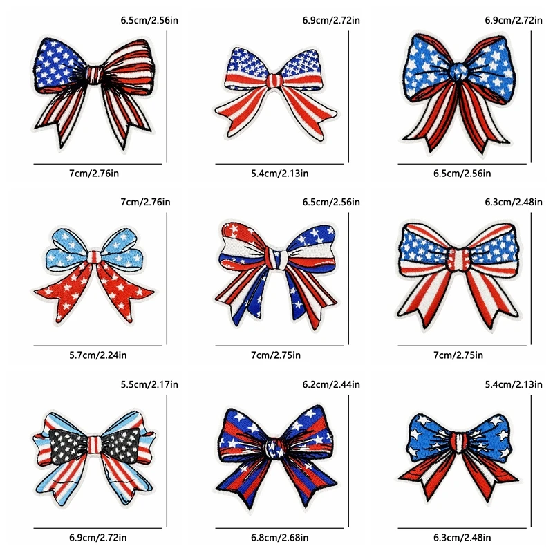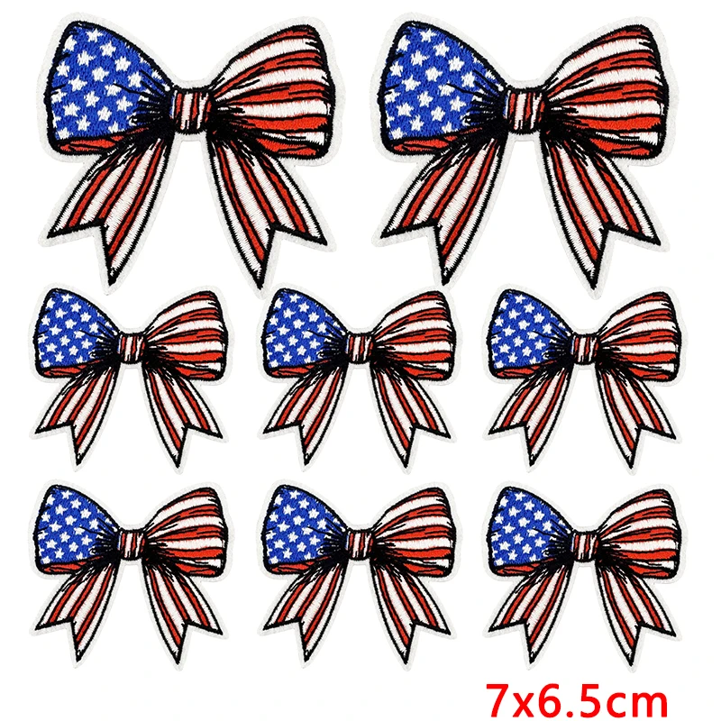 10 Uds. Venta al por mayor de parches de hierro con lazo de estrella bordado completo de dibujos animados para ropa DIY elementos de bandera americana apliques de costura de dibujos animados