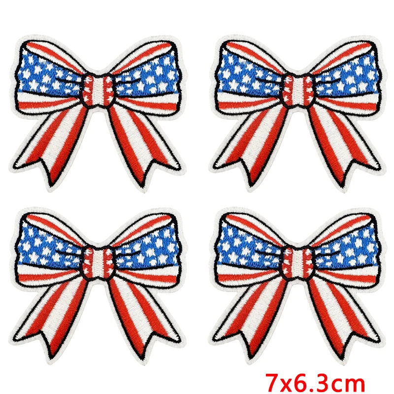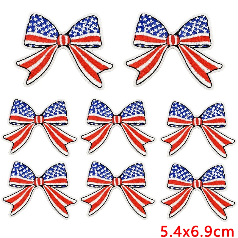 10 Uds., venta al por mayor, parches de hierro con lazo de estrella bordado completo de dibujos animados para ropa DIY, elementos de la bandera americana, apliques de costura de dibujos animados