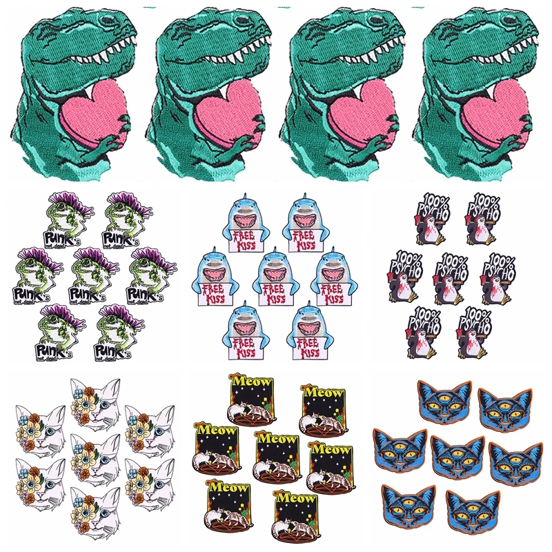 10 unids/lote 100% parche Fusible Psycho parches bordados de animales de dibujos animados para ropa Aninal hierro en parche decoración pegatina coser