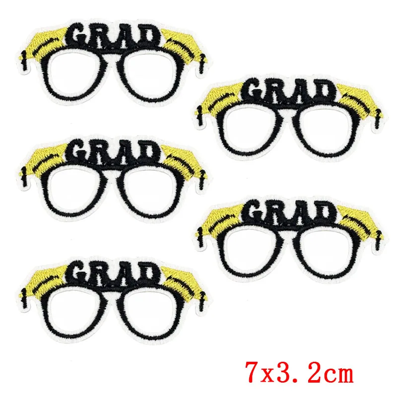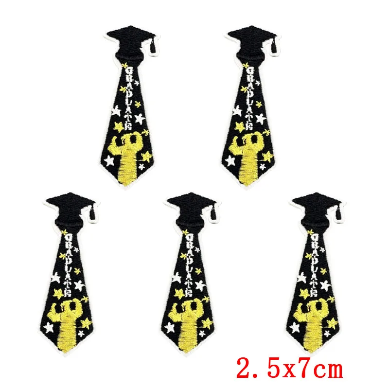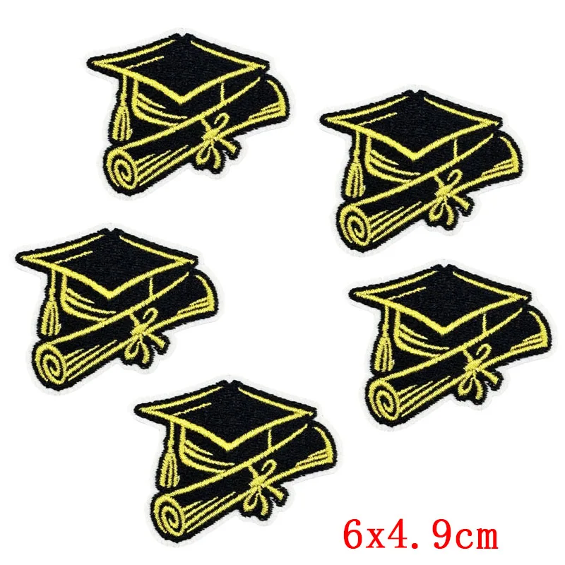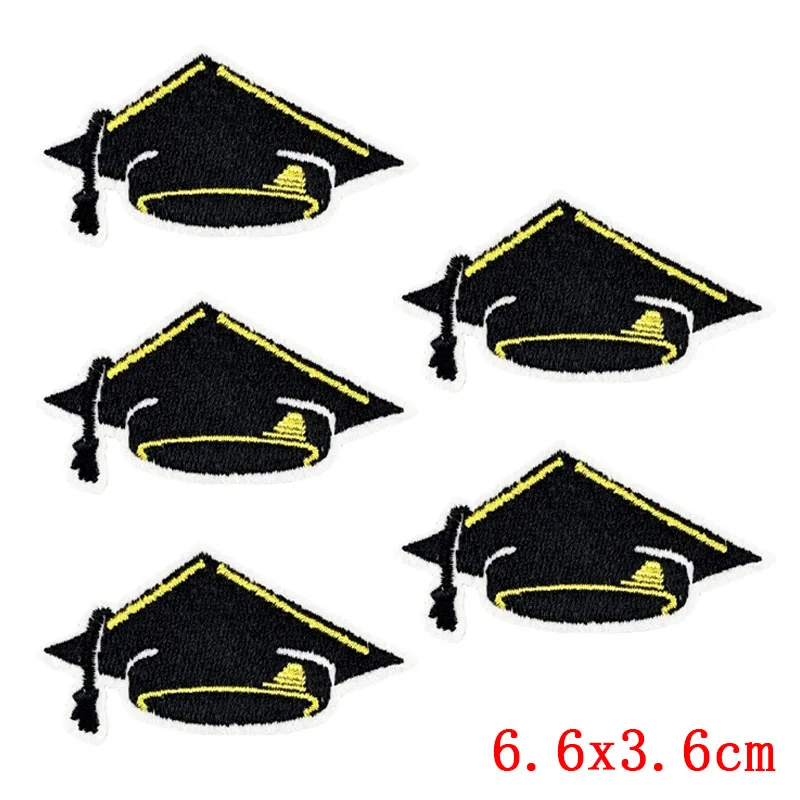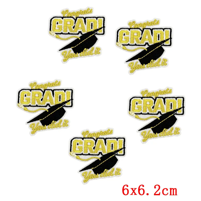 10 unids/lote 2025, parche de graduación DIY bordado planchado en parches para ropa, parches termoadhesivos en uniforme de gorra de soltero