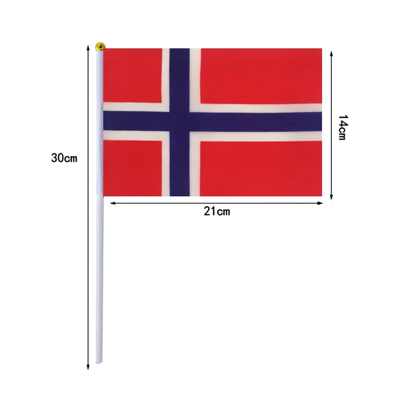 10 unids/lote banderas onduladas a mano de Noruega 14x21cm bandera de Noruega al por mayor