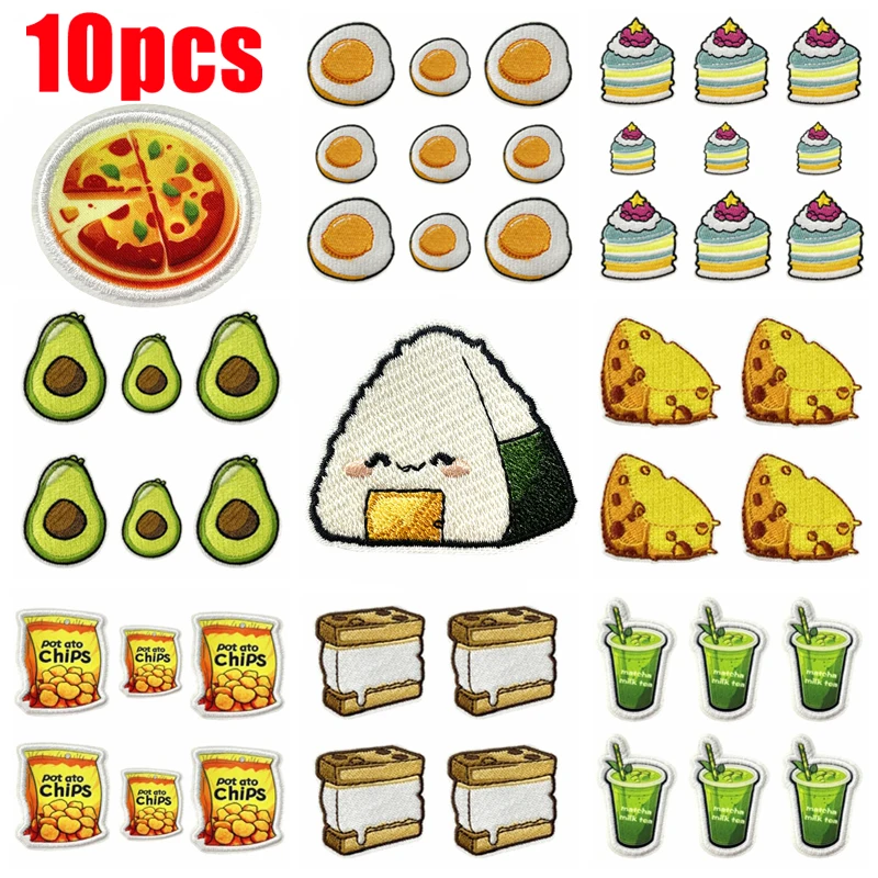 10 unids/lote bebidas comida frutas bordado DIY parche de dibujos animados hierro en parches para ropa parches termoadhesivos para ropa DIY