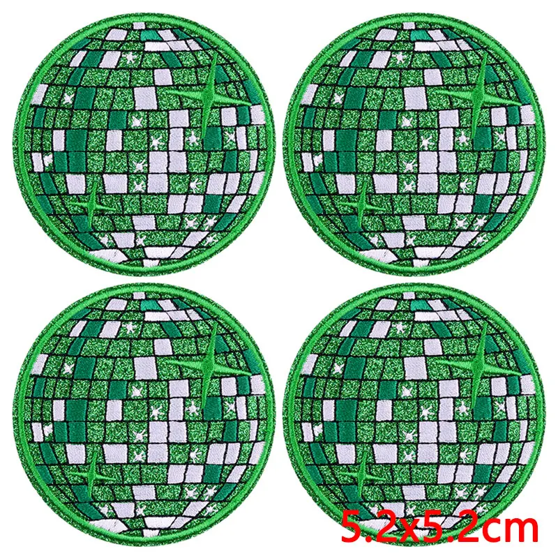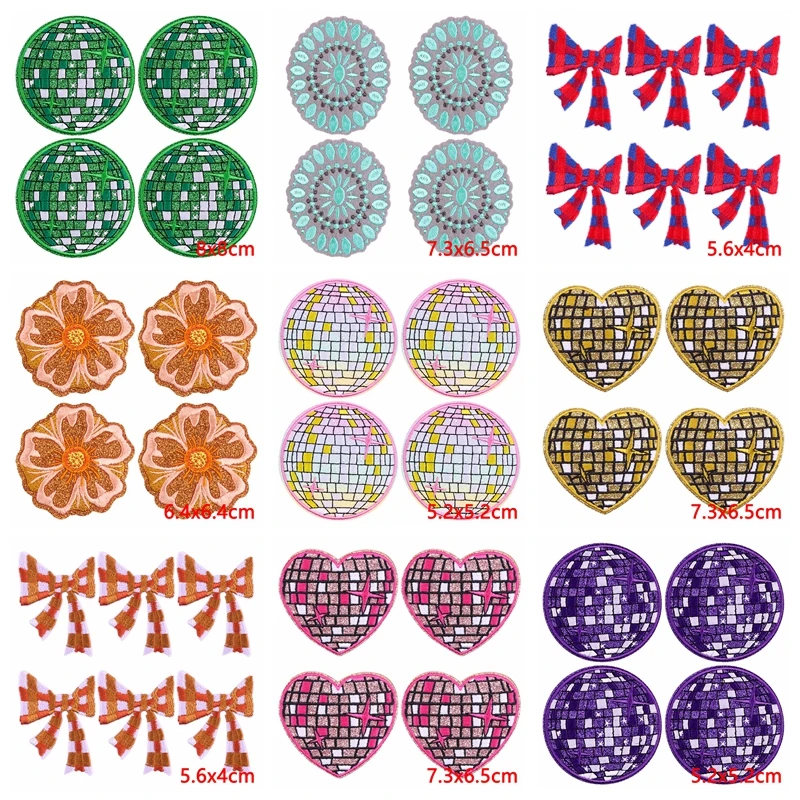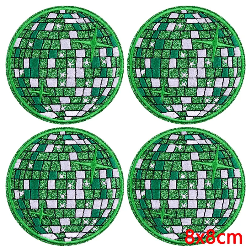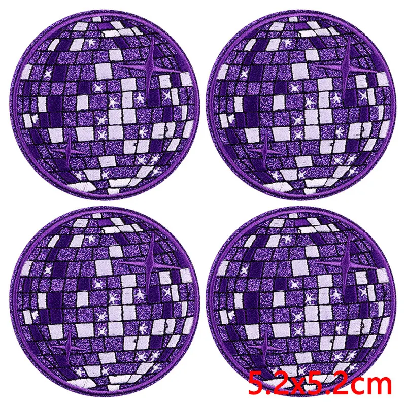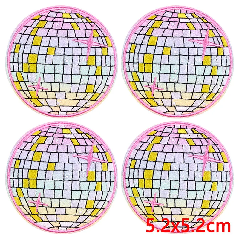 10Pcs/Lot Disco Ball Light Embroidery Patch Iron On Patches For Clothing Cartoon Flower Embroidered Patches On Clothes Applique