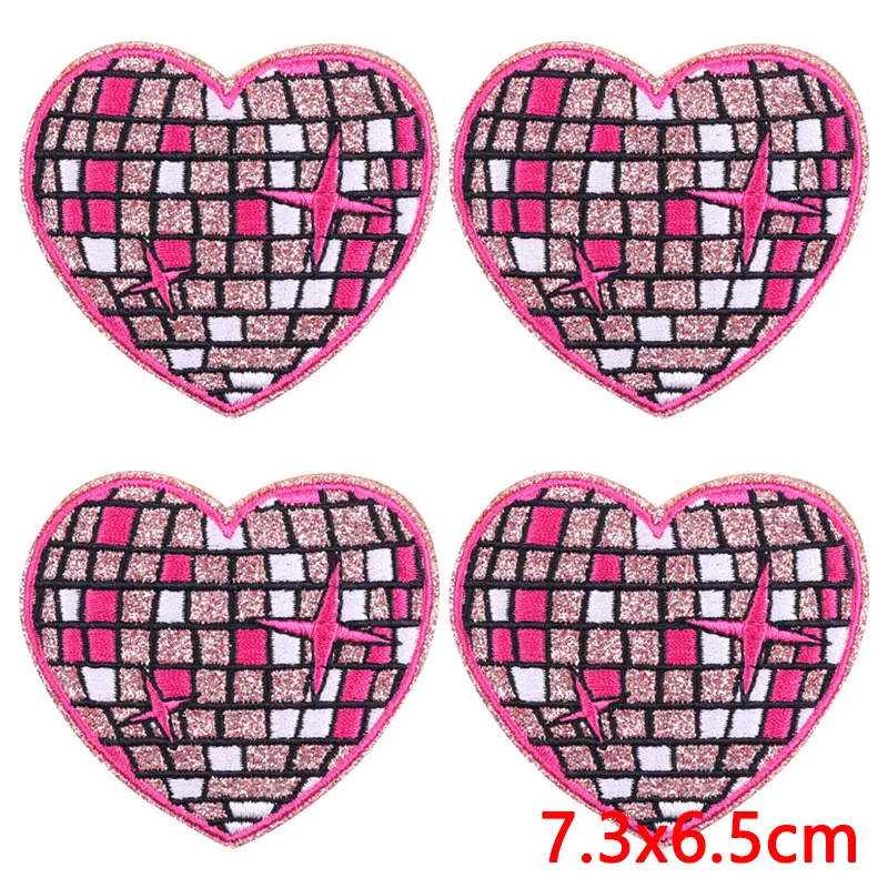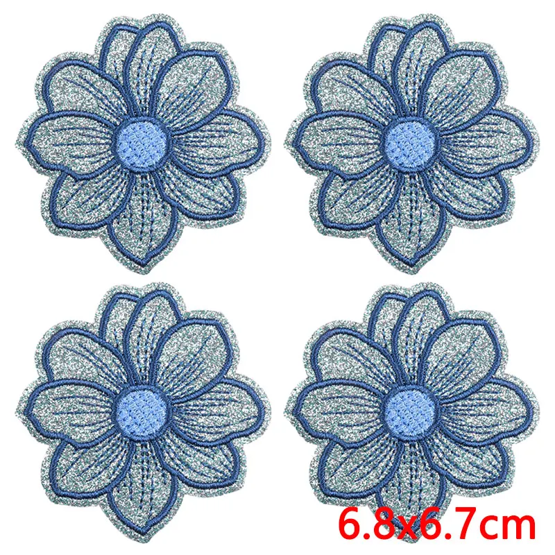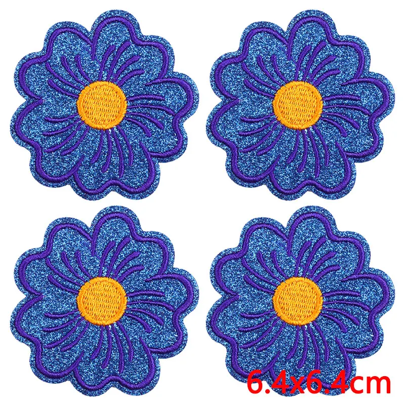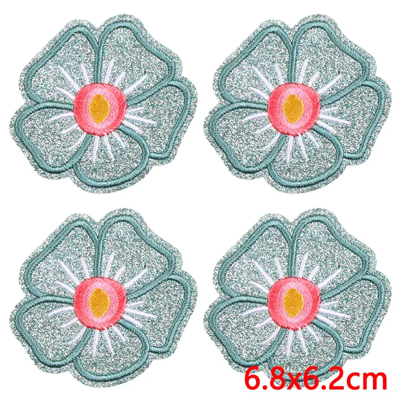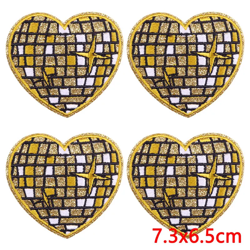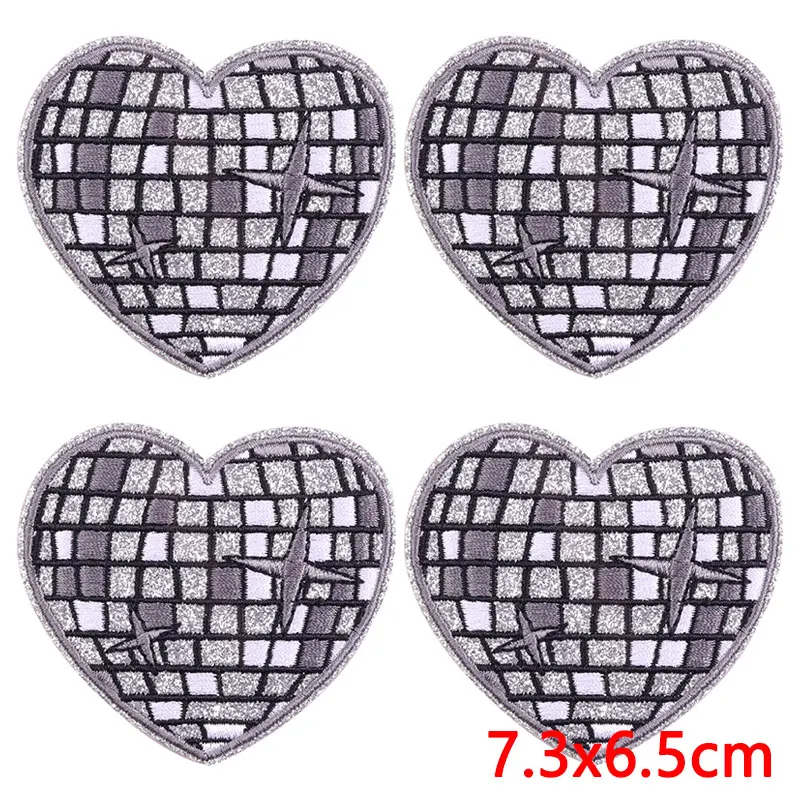 10Pcs/Lot Disco Ball Light Embroidery Patch Iron On Patches For Clothing Cartoon Flower Embroidered Patches On Clothes Applique
