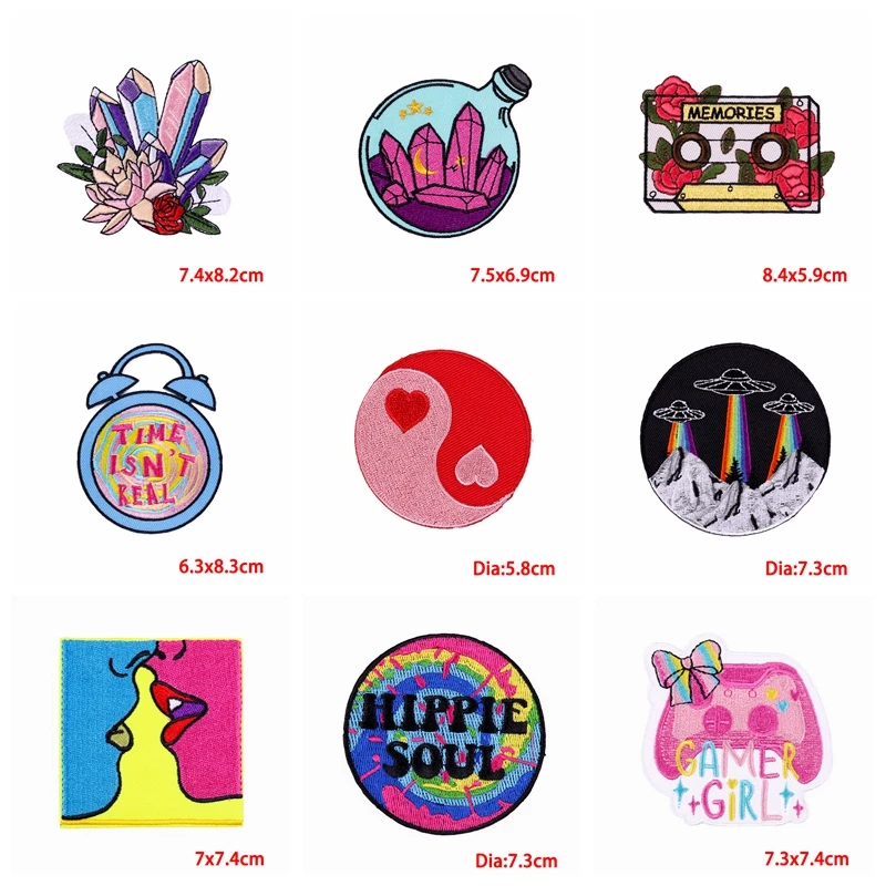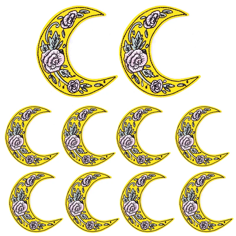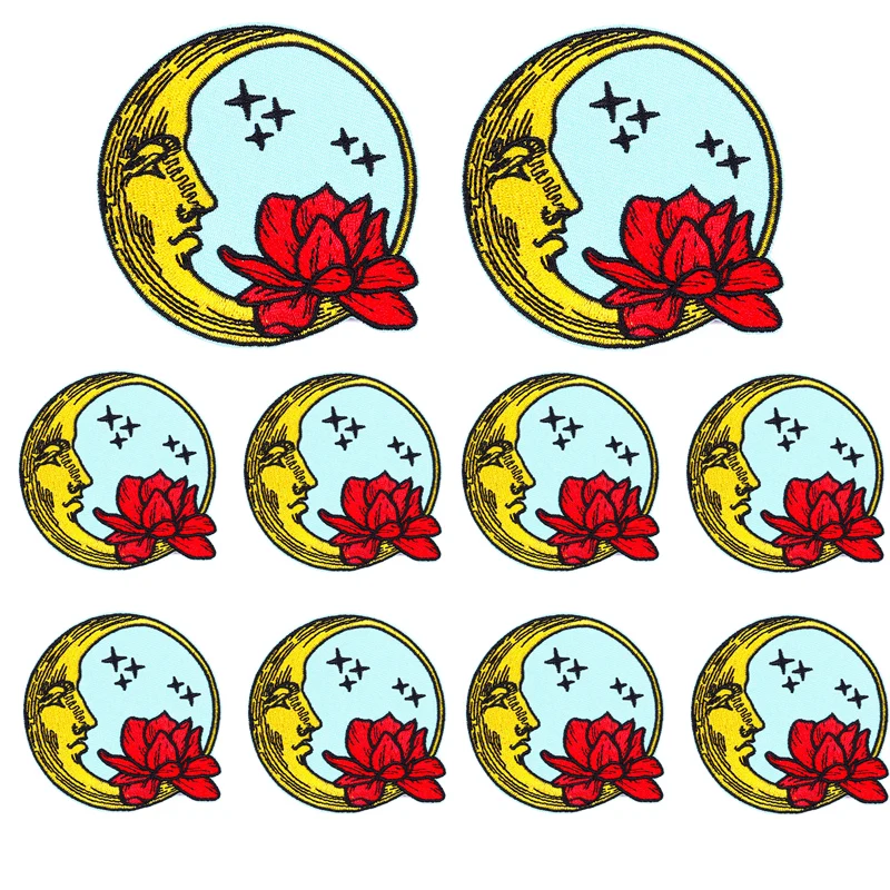 10 unids/lote cinta de parche de dibujos animados flor de cristal parche bordado hierro en parches DIY mariposa Luna parche chaquetas Jeans insignias para coser