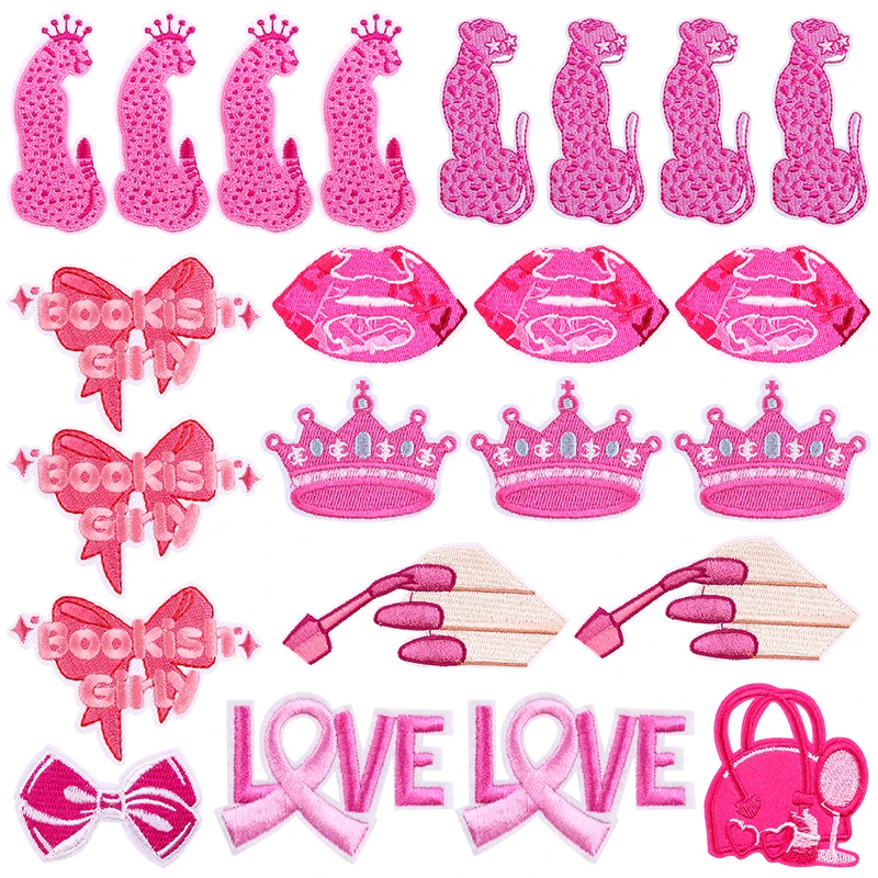 10 unids/lote corona de amor rosa parches para planchar para ropa parche termoadhesivo leopardo librero chica parches bordados para ropa