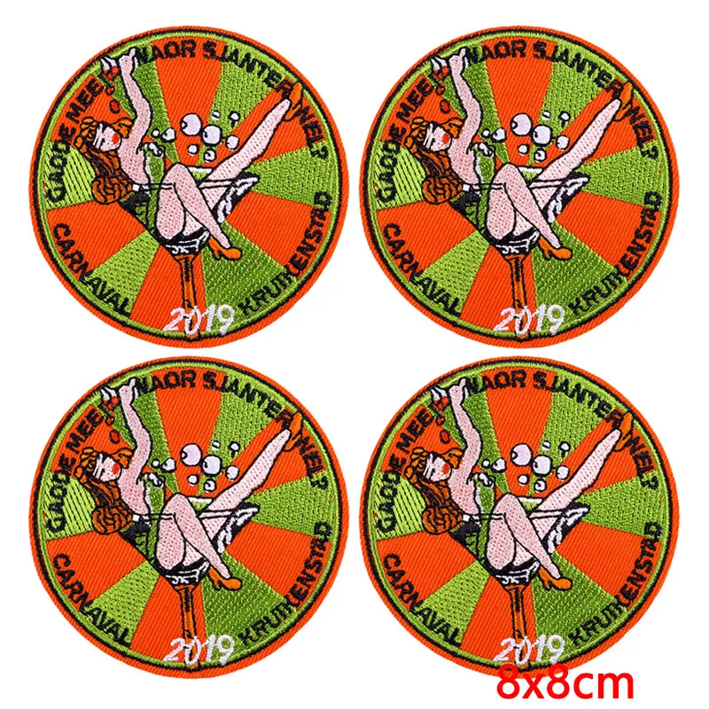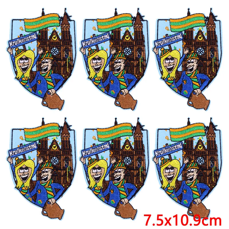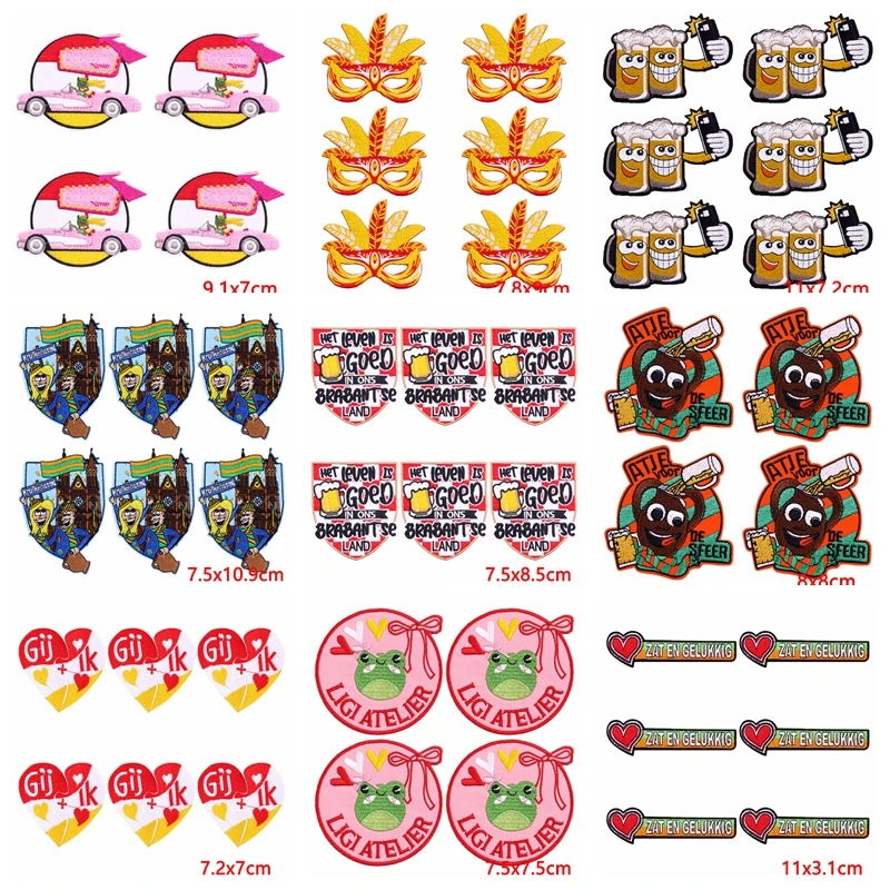 10 unids/lote de parches bordados Oeteldonk tejidos para ropa, parche de Carnaval a los Países Bajos, parches de hierro en pegatinas para ropa