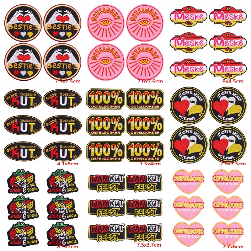 10Pcs/Lot Netherland Emblem Oeteldonk Patch Iron On Patches For Clothing Thermoadhesive Patches Dutch Carnival Embroidery Patch
