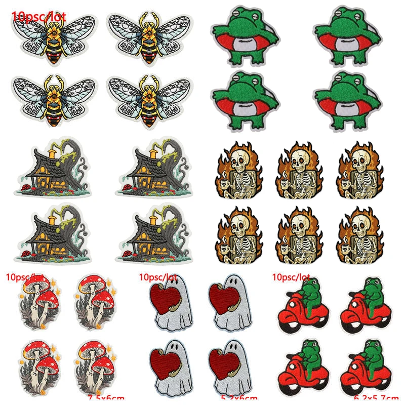 10 unids/lote de parches bordados termoadhesivos Punk Hip Hop para ropa parche de animales para ropa pegatinas insignias