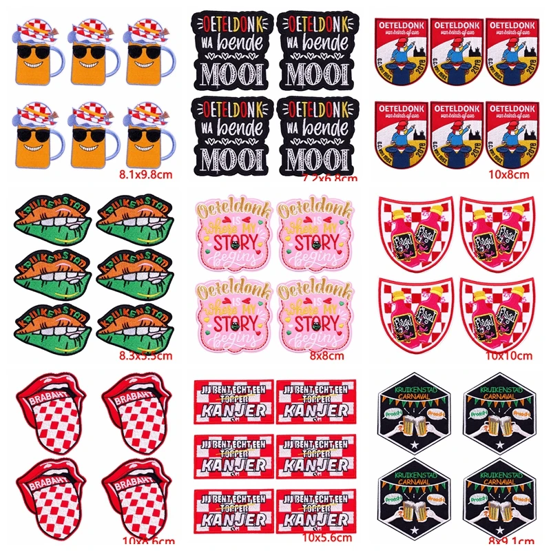 10Pcs/Lot Netherlands Oeteldonk Carnival Patch Iron On Embroidery Patches For Clothing Thermoadhesive Patches On Clothes Decor