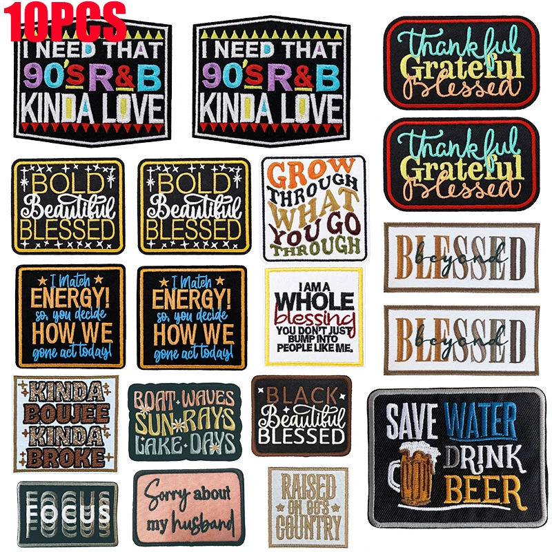 10 unids/lote de letras personalizadas negras bordadas, sombreros DIY, mochila, parche para coser, parche con eslogan de letras, parches para planchar para ropa