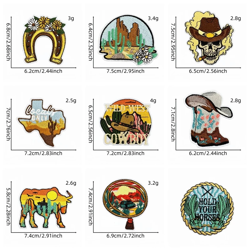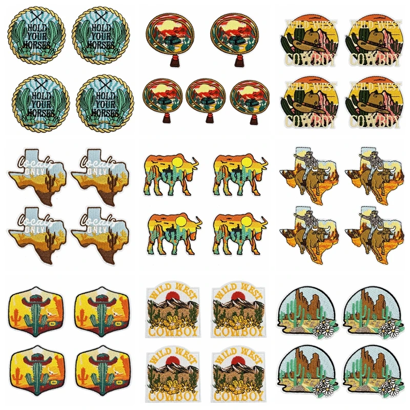 10 unids/lote paisaje de verano/Parche de vaqueros occidentales insignias bordadas parches para planchar para ropa sombreros chaquetas pegatina bordada