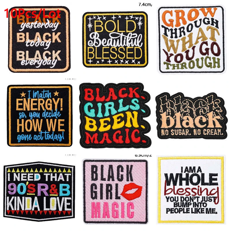 10 unids/lote parche bordado de historia negra- parches termoadhesivos para insignias de pegatinas de ropa