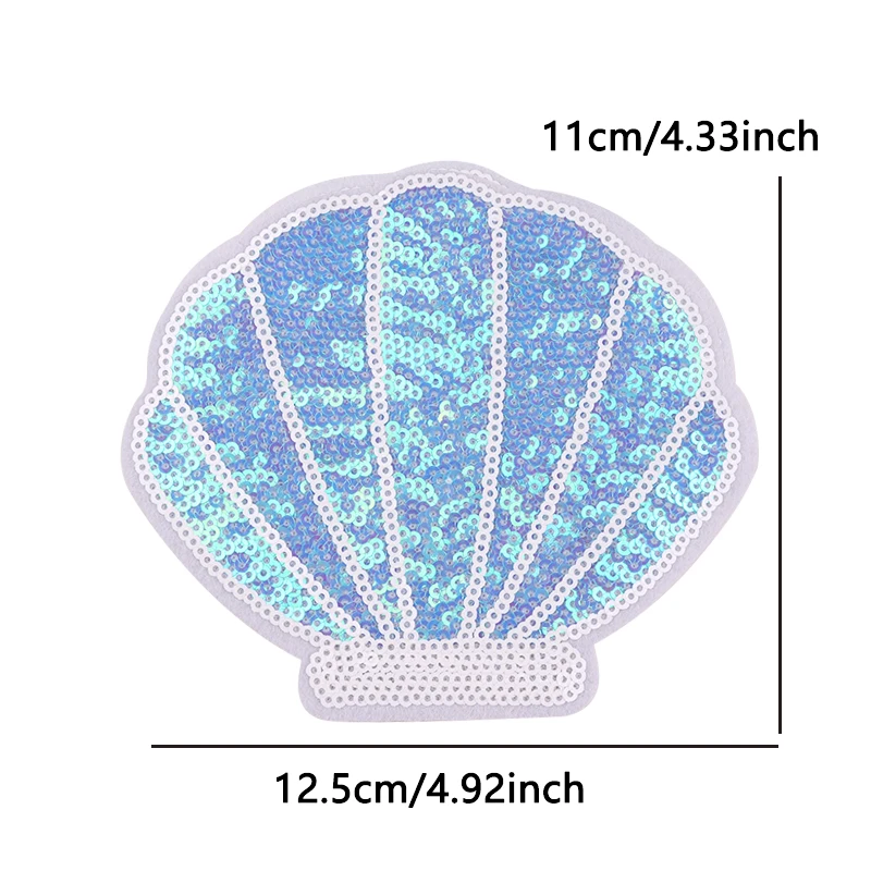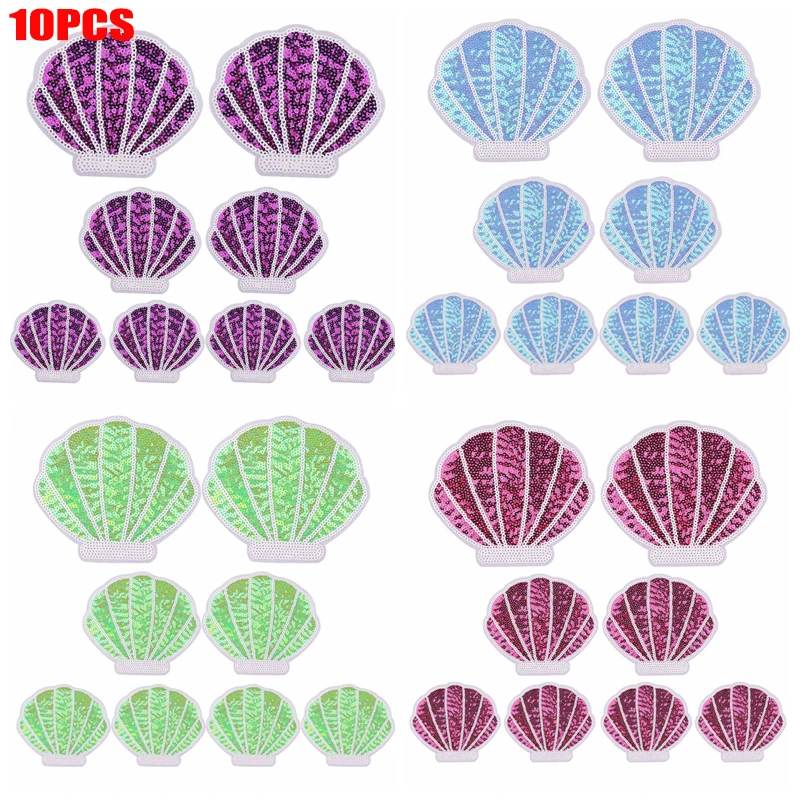 10 unids/lote parche de concha de lentejuelas parches de lentejuelas bordados de dibujos animados parches para planchar DIY sombreros bolsos chaquetas coser insignia de lentejuelas decorar