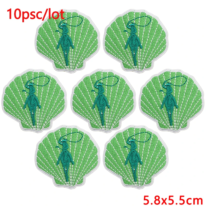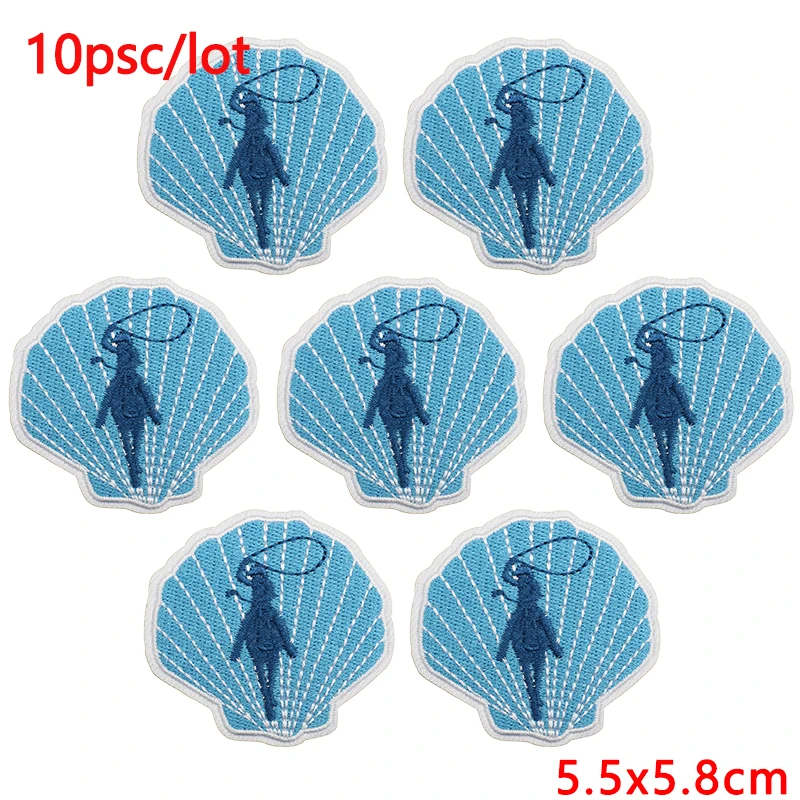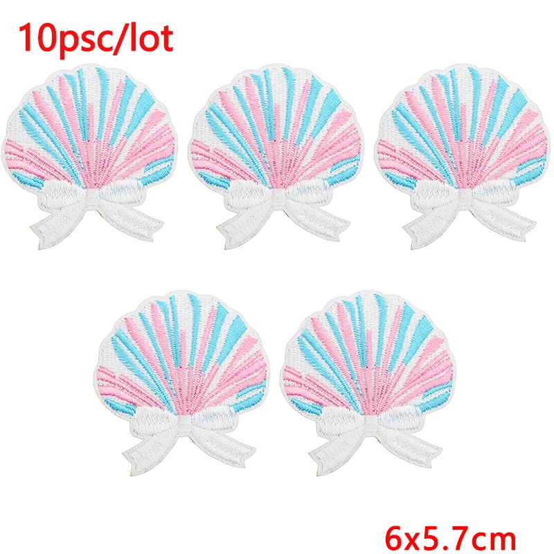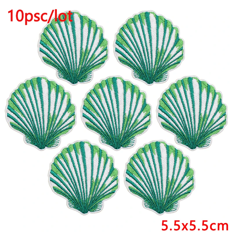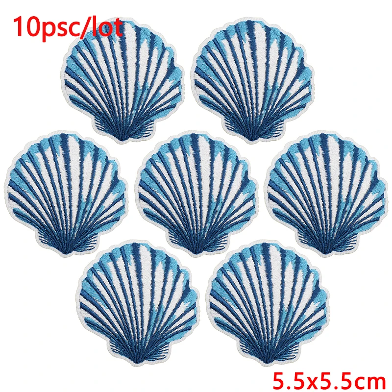 10 unids/lote parche de concha de océano parches de hierro para ropa pegatina parches bordados de Surf de playa en ropa apliques de costura DIY