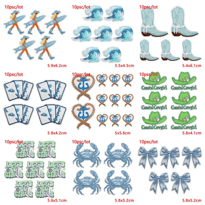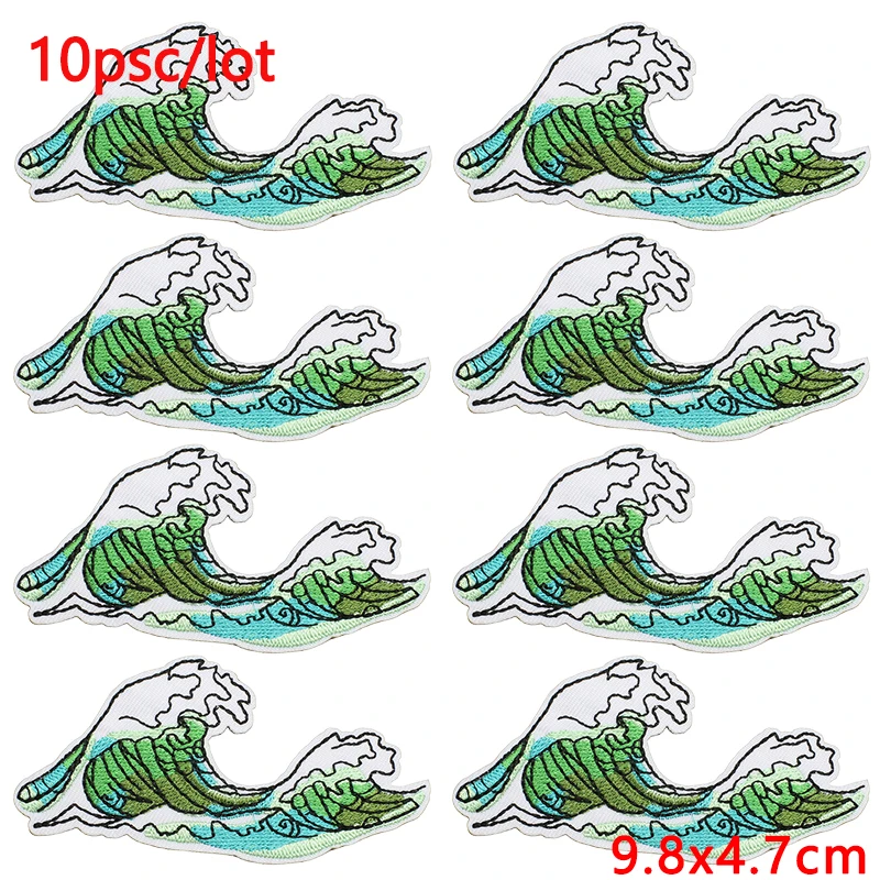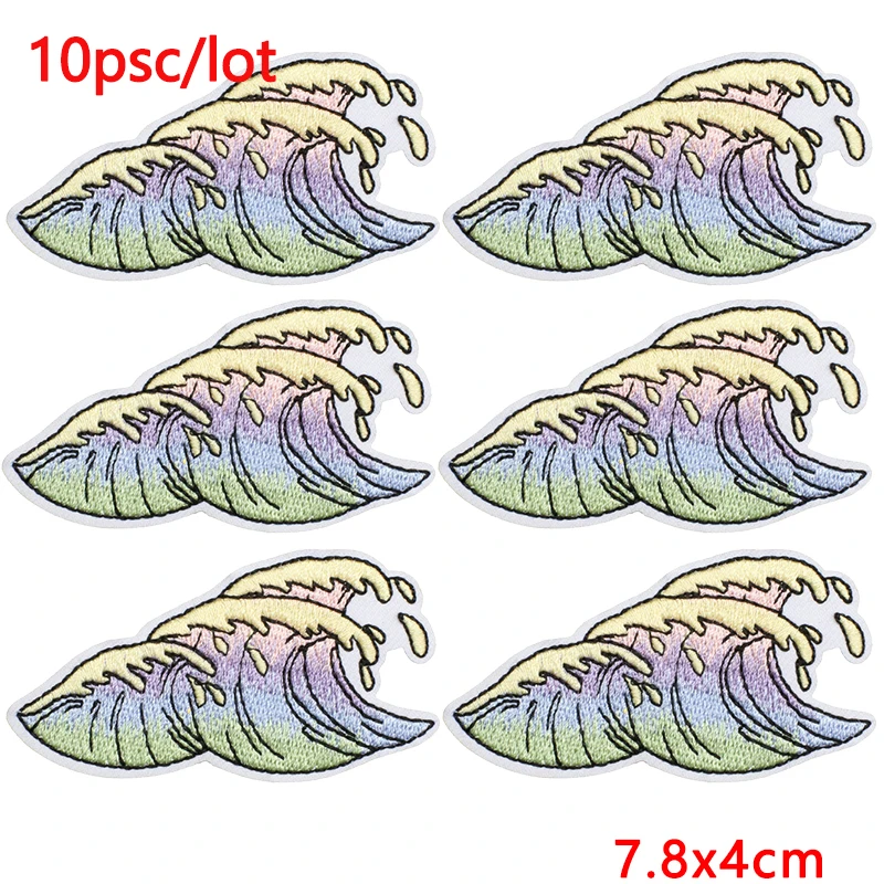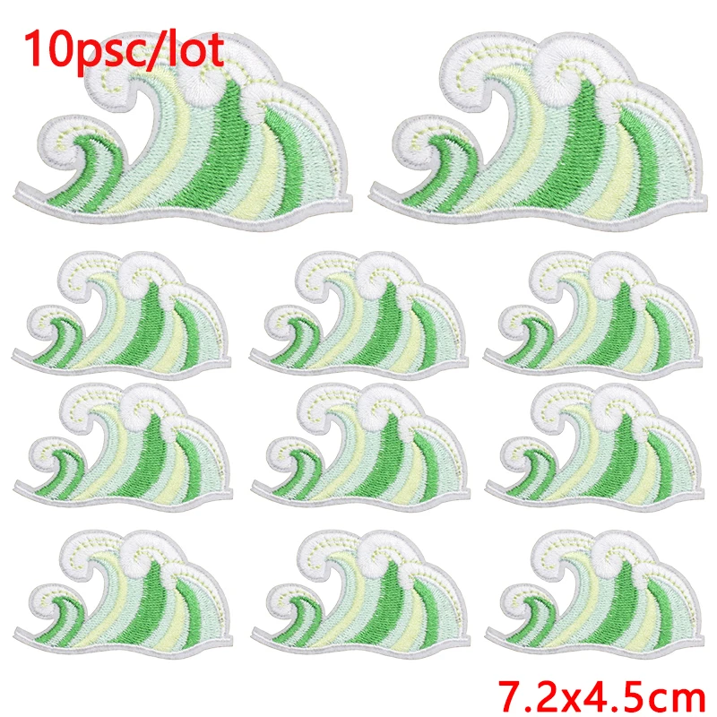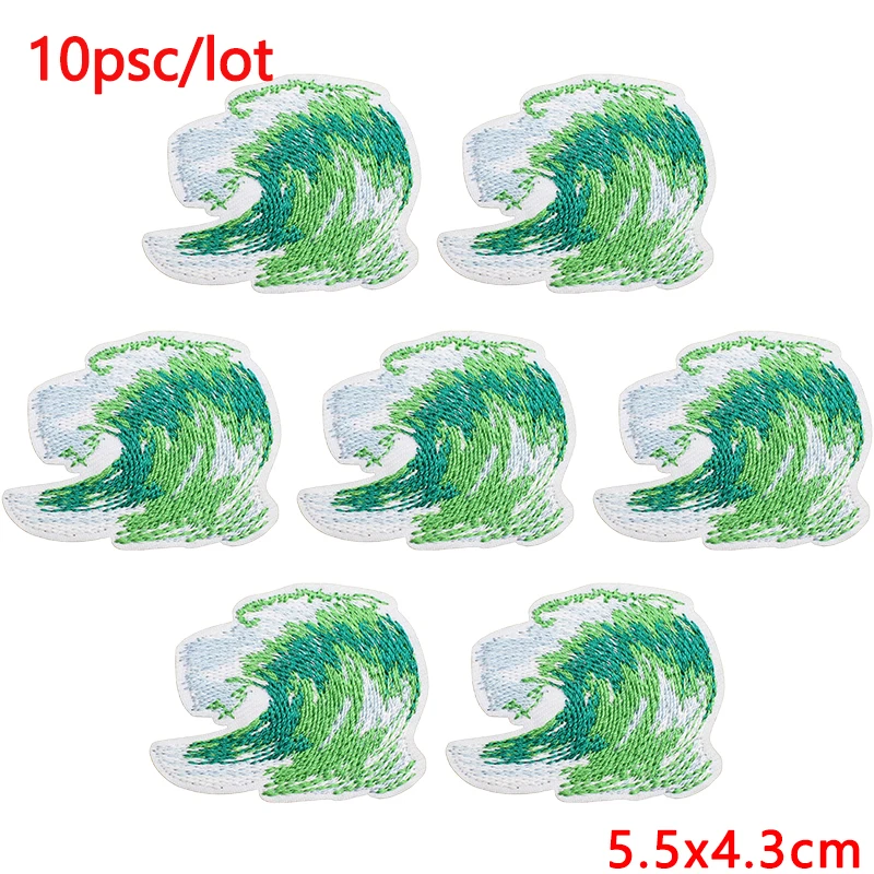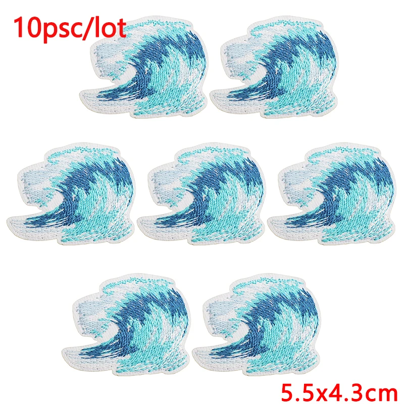 10 unids/lote parche de concha de océano parches de hierro para ropa pegatina parches bordados de Surf de playa en ropa apliques de costura DIY