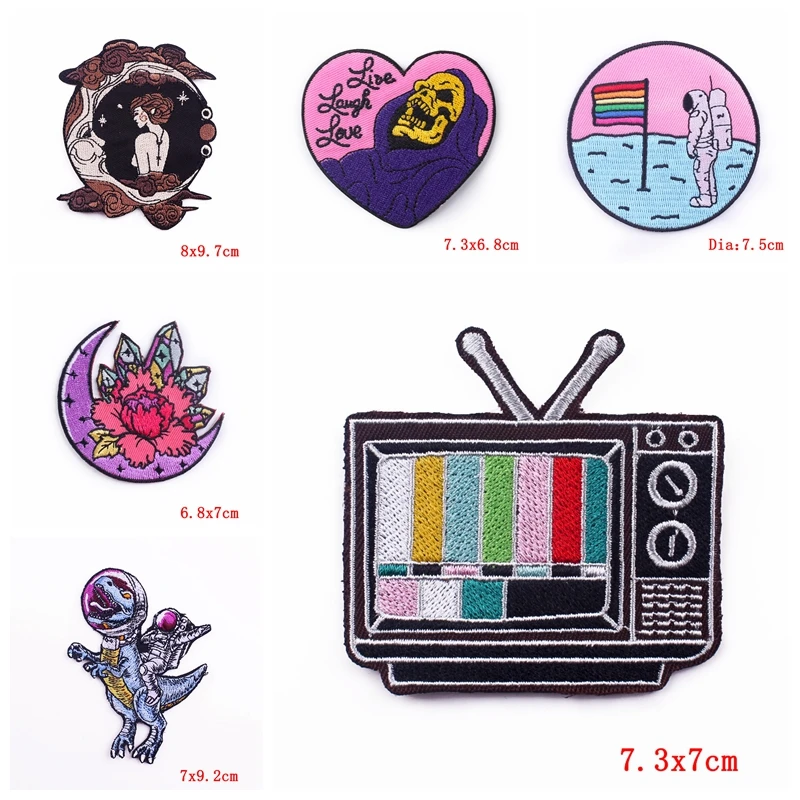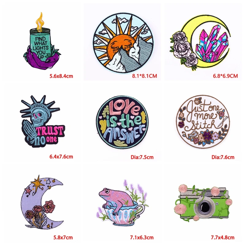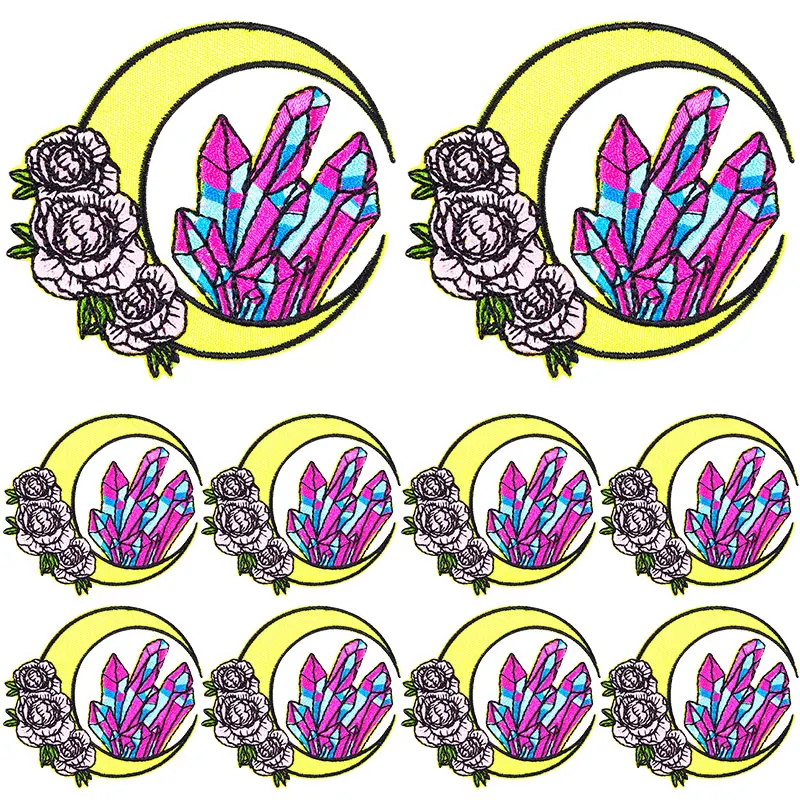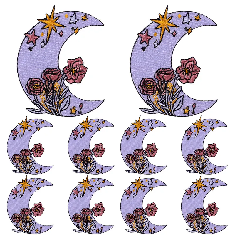 10 unids/lote parche de dibujos animados sol Luna bordado parche parche para planchar para ropa parches de letras en ropa coser/pegatina para planchar