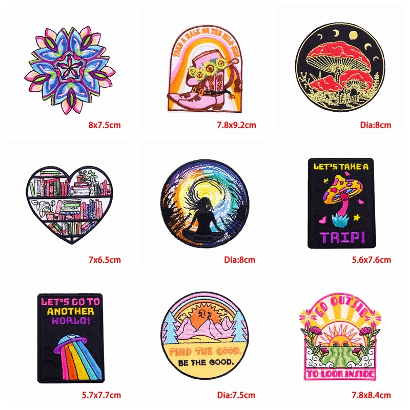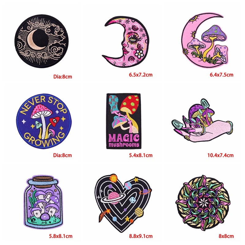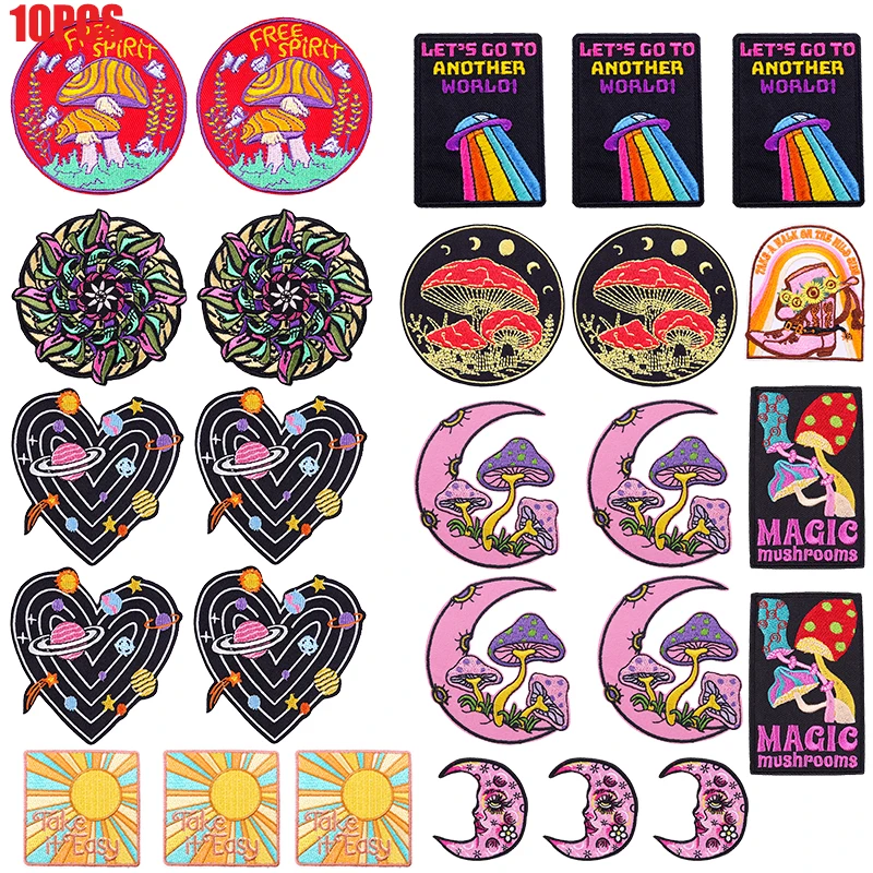 Parche de dibujos animados de 10 unids/lote, parches bordados con forma de seta y sol, parches termoadhesivos para ropa, insignias de costura