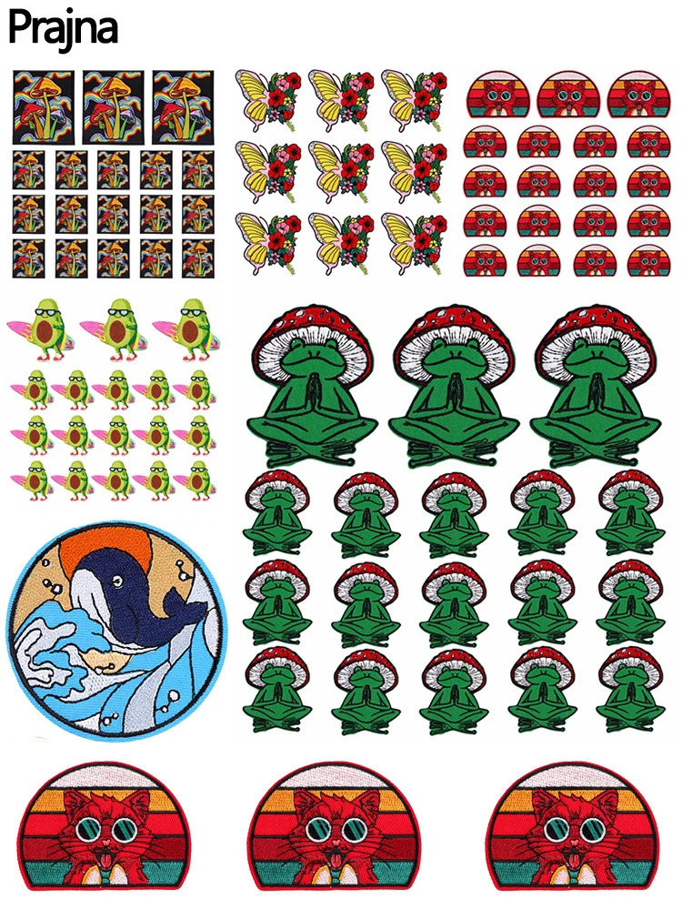 10 unids/lote parche de gato mariposa de rana parche bordado de dibujos animados/animales parches de hierro para ropa parches de setas en ropa DIY