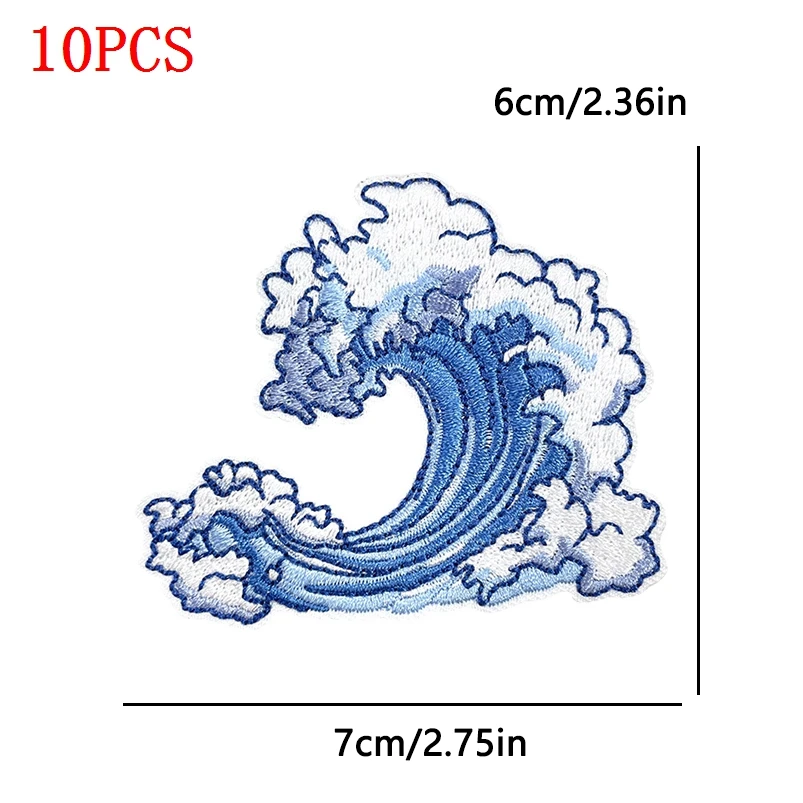 10 unids/lote parche de lentejuelas de ola de mar parche para planchar para ropa sombrero sol bordado parches para ropa insignias adhesivas de personalidad
