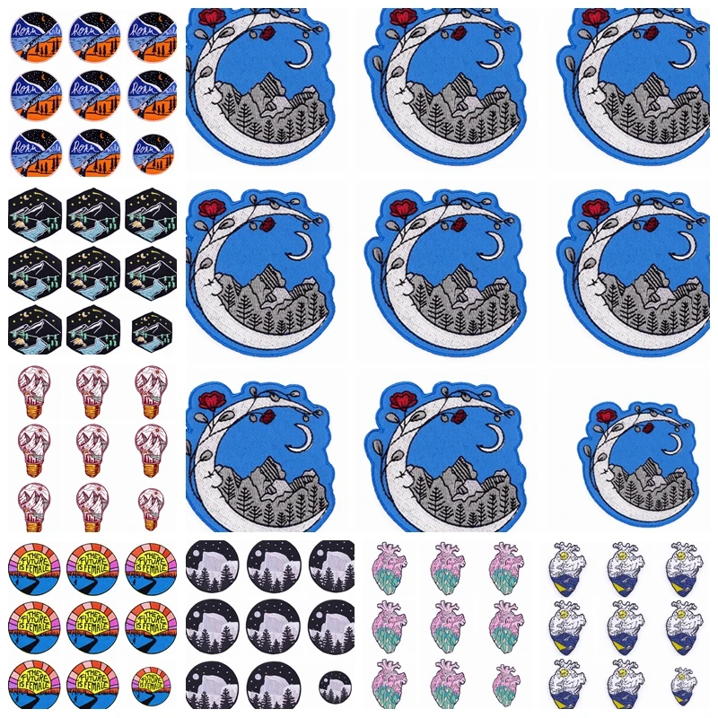 10 unids/lote de parches de hierro para acampar, parches para ropa, pegatinas para ropa de aventura DIY, parche bordado, rayas en la decoración de la chaqueta