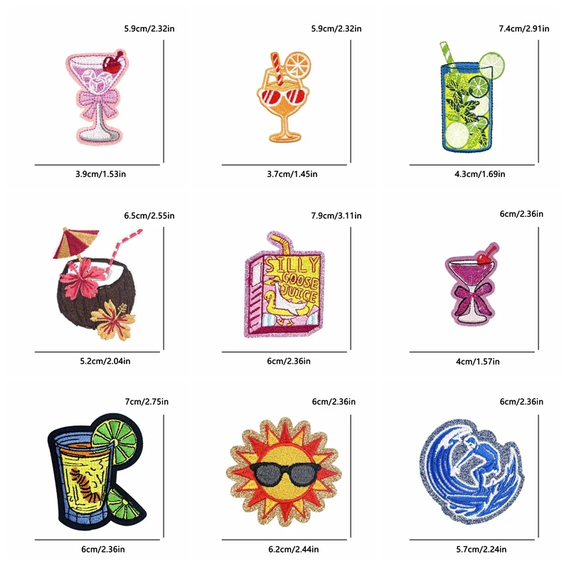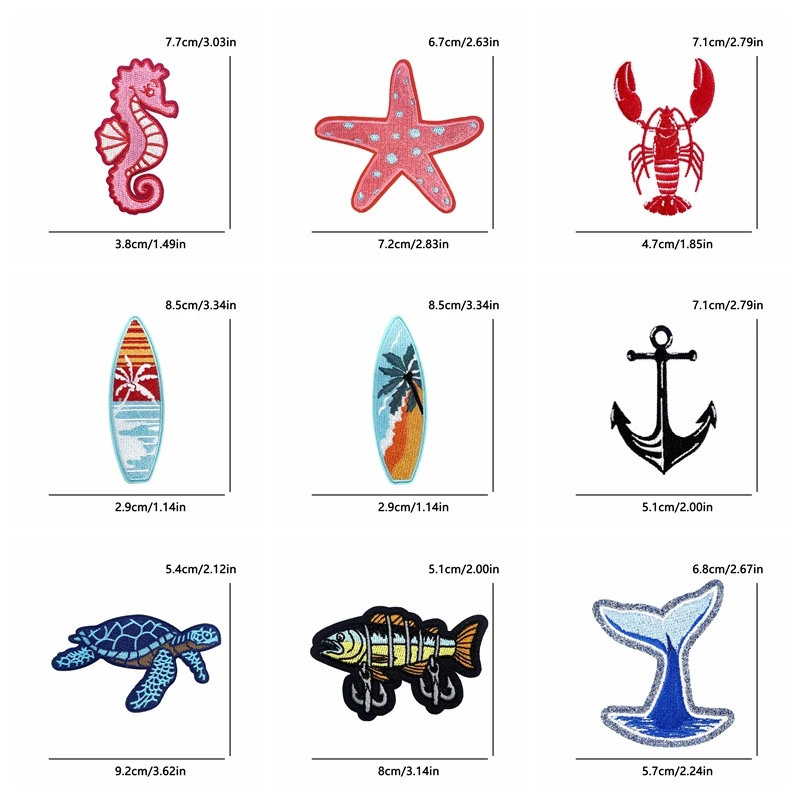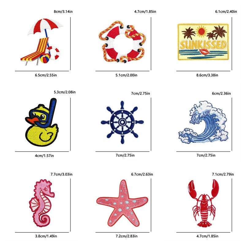 10 unids/lote de parches bordados de bebidas frutales estilo Surf de verano de dibujos animados, parches para planchar para ropa, langosta, tortuga, estrella de mar, coser DIY
