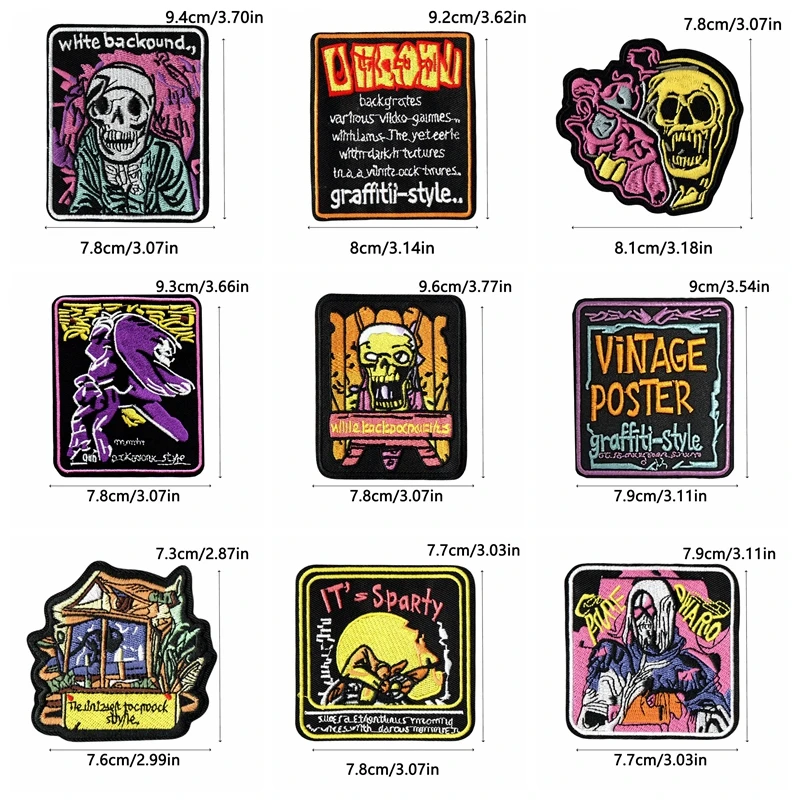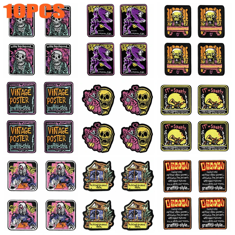 10 unids/lote parches bordados de calavera de terror cuadrado DIY parches para planchar para ropa parche de calavera Punk sombreros chaquetas pegatinas insignia